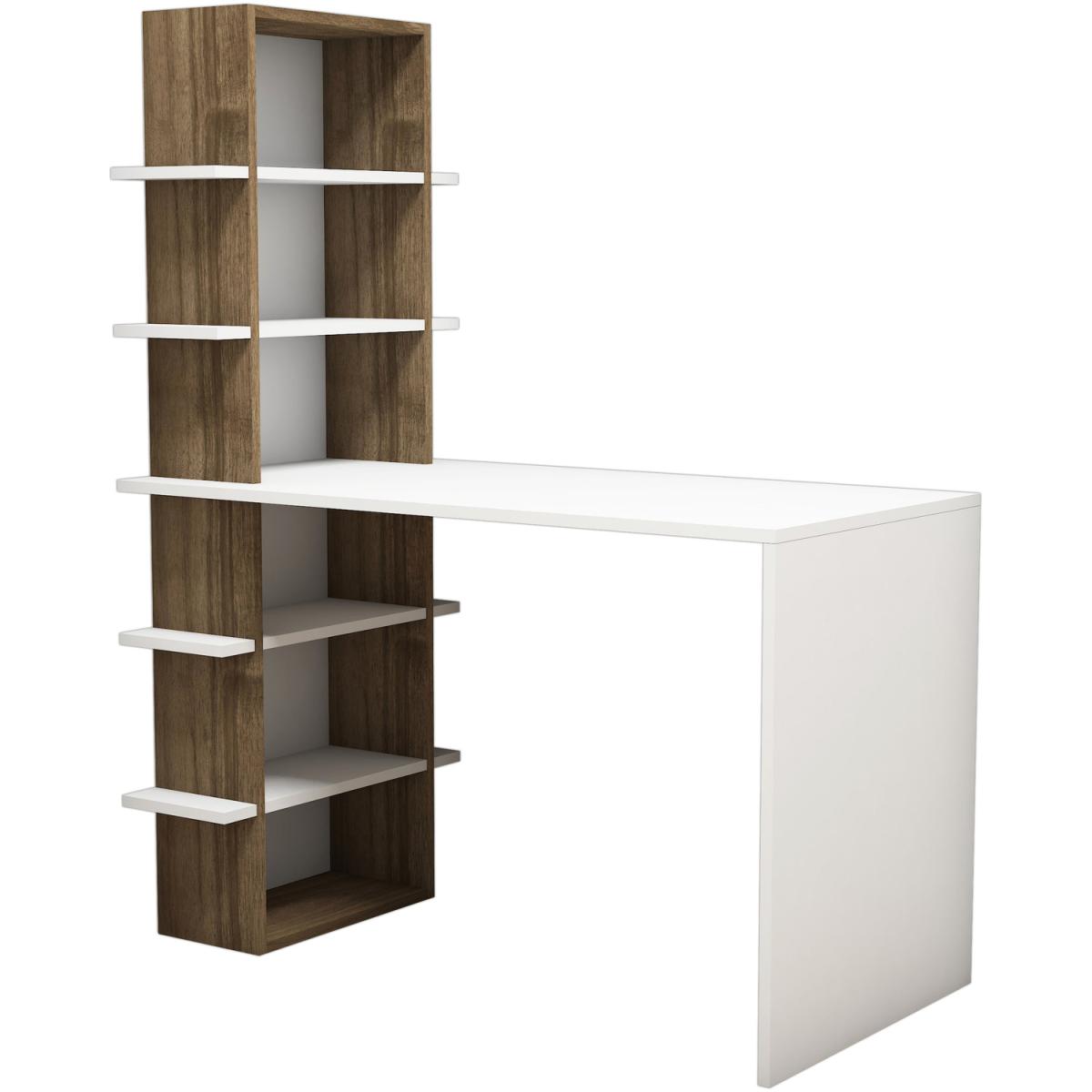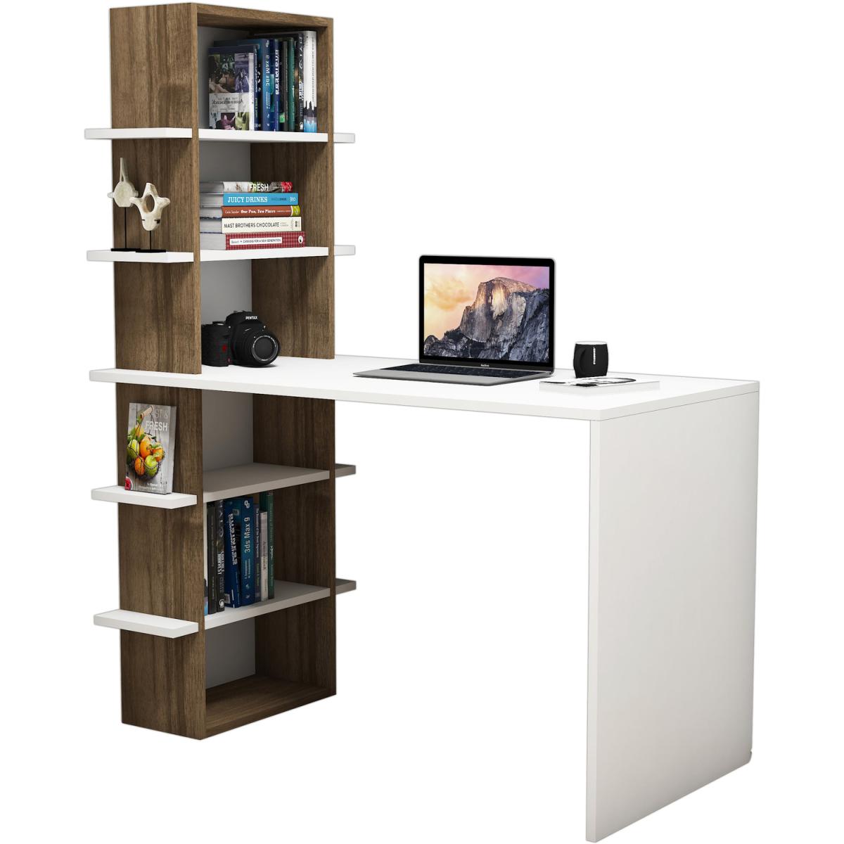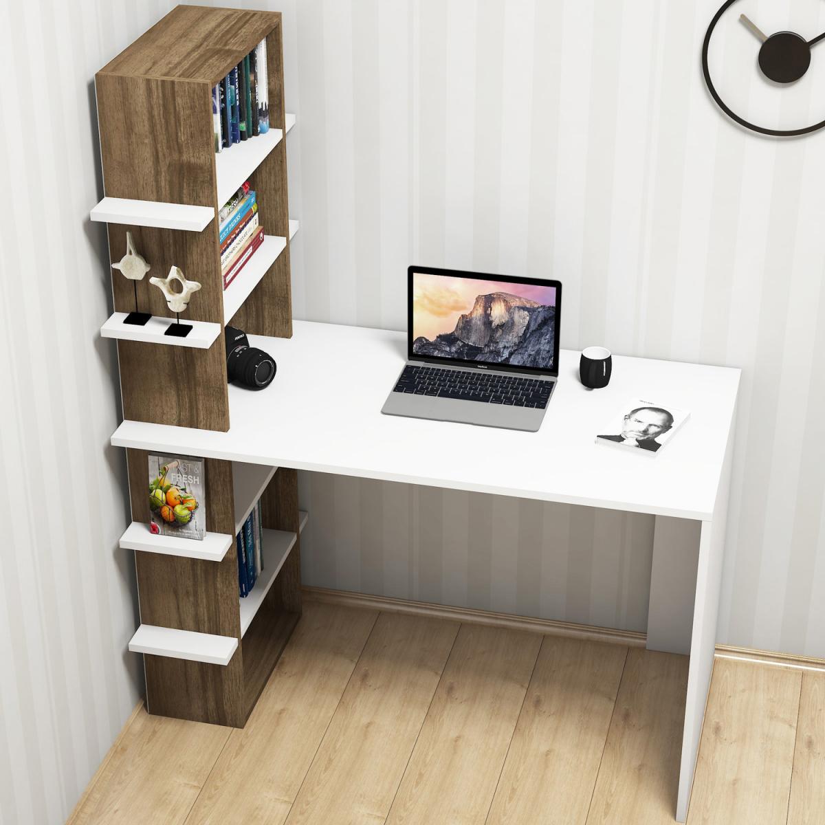 This unique, contemporary style desk and shelf unit offer the ideal combination for your home office. The desktop is finished in elegant white colour and the bookcase in warm walnut colour.