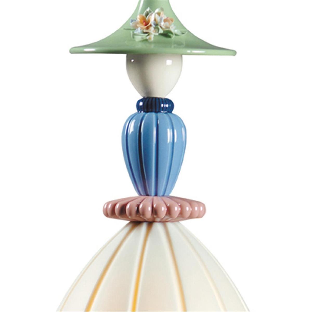 Illuminate your interior in style with this Mademoiselle ceiling lamp from Lladro. Expertly handcrafted from porcelain, it features a beautiful female-like form in chic pastel tones.