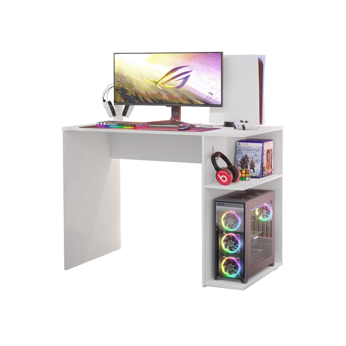 Madesa Compact Gaming Desk with 2 Shelves - White