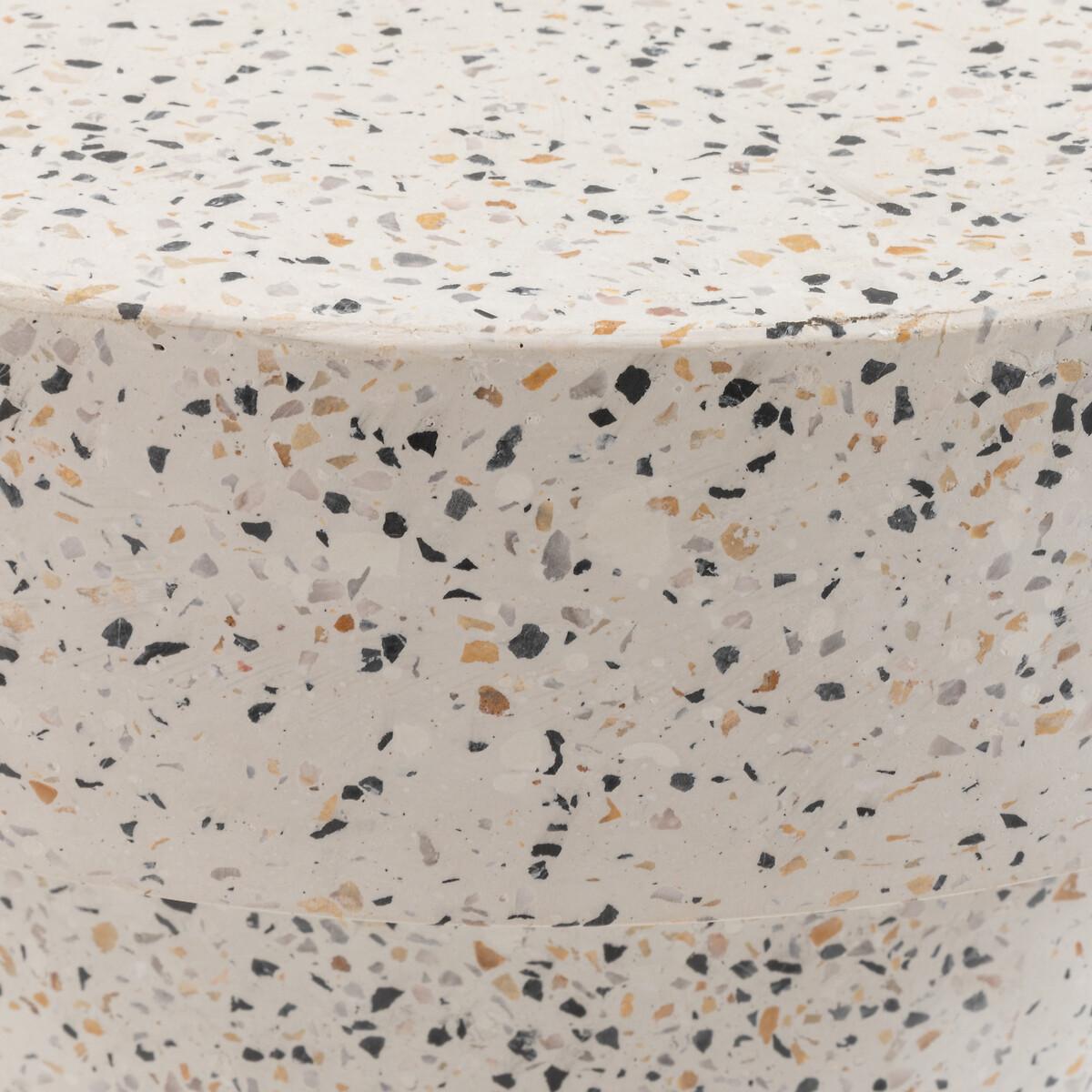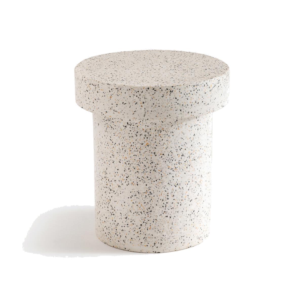 The decorative Madina terrazzo side table gives style to a balcony, a garden or on a terrace. Product Details • Mushroom shape • In white and black terrazzoDimensions. Overall • Diameter: 37.5cm • Height: 42cmDelivery:. Assembly required. Available for home delivery. Dimensions and weight of parcel:1 parcel • L46 x H53 x D46cm. 19kg.