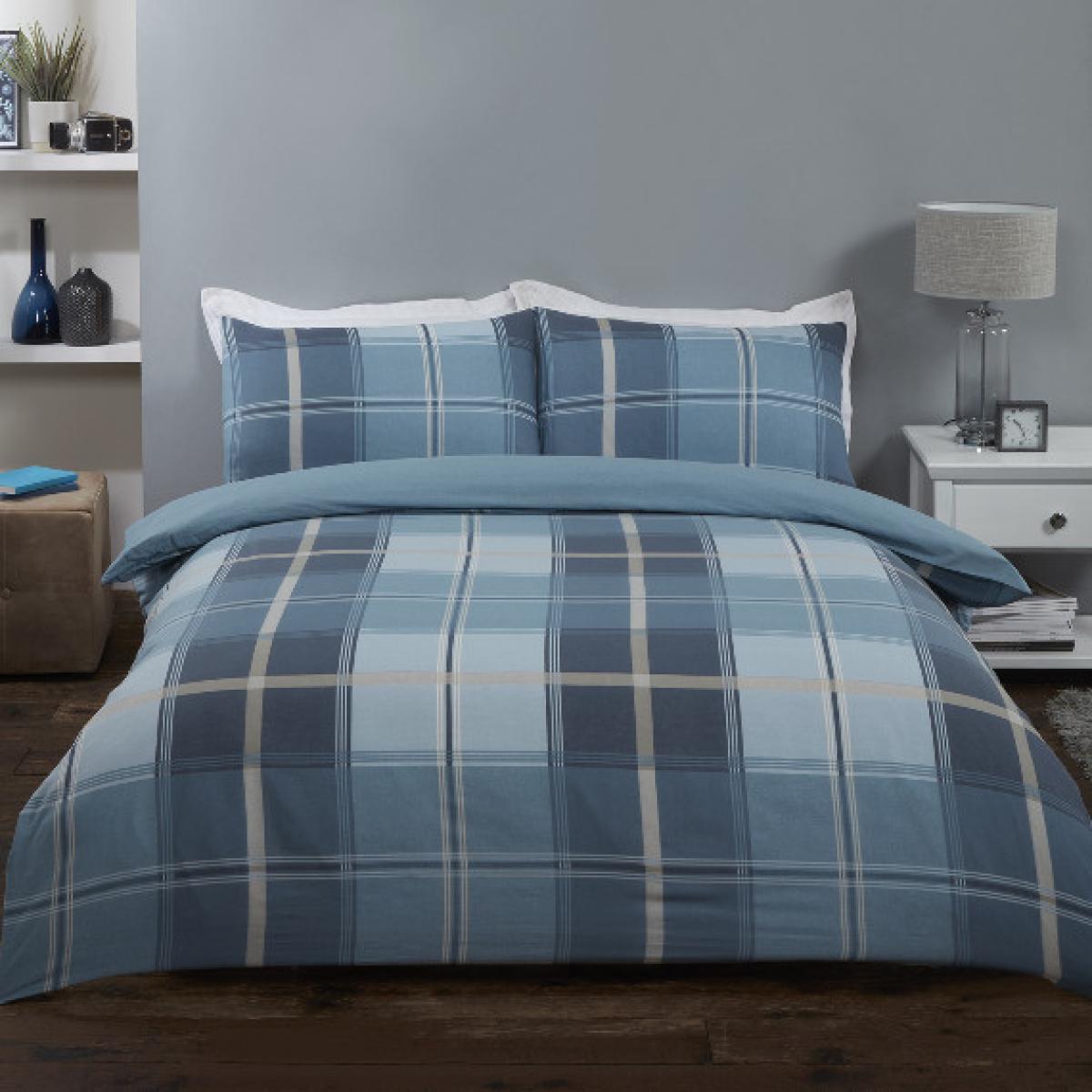 Madison Check Two Pack Duvet Cover and Pillowcase Sets - Blue / Double