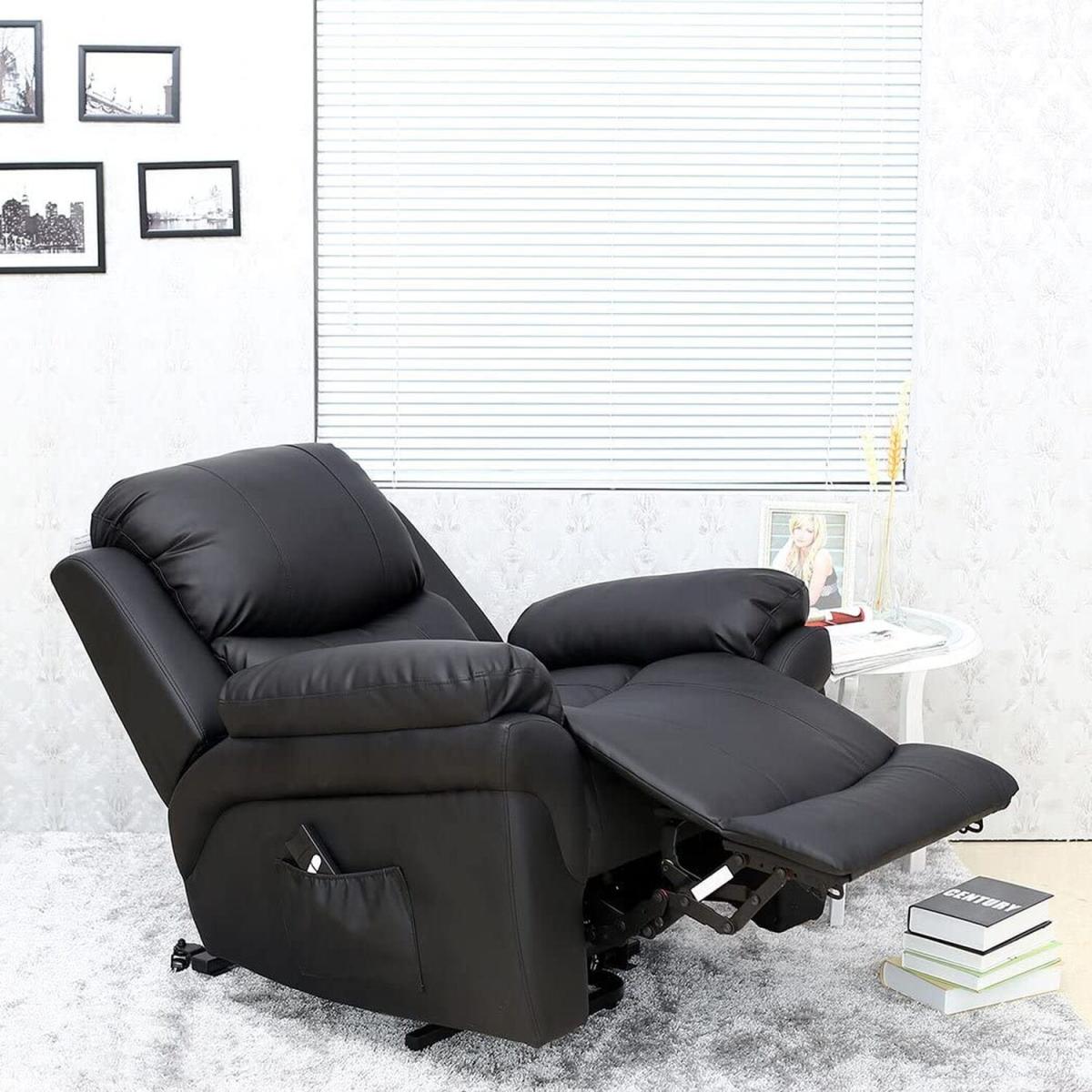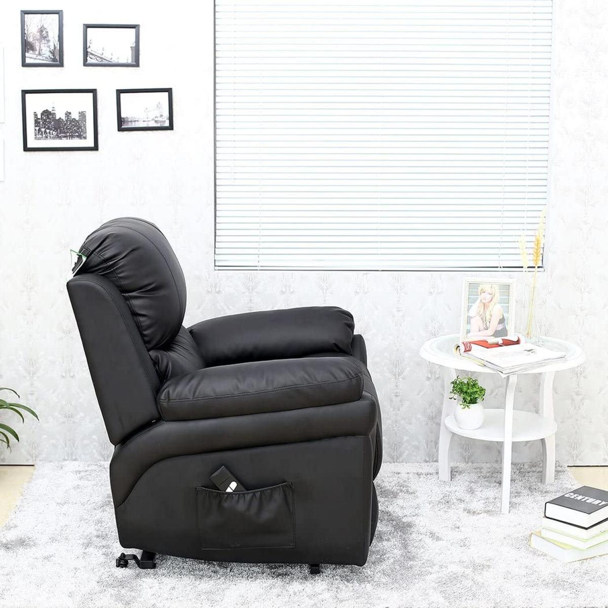 Easy to Use 2-Button Leather Electric Rise Recliner The Madison Riser Recliner Chair features a single motor mechanism and has been designed for ease of use. The simple to operate, two button handset allows you to either rise or recline your chair at the touch of a button. The rise function will enable you to raise the chair to an almost standing position, making ideal for those who require assistance when transferring to or from the chair. Whilst the recline function allows you to adjust the chair to a comfortable snooze position for ultimate relaxation. The Madison has been finished in a real leather (Bond Grade) effect upholstery for a modern and stylish appearance. In addition to its attractive appearance the leather upholstery also provides a convenient wipe clean surface for the user. br. All of our Recliners are supplied in two separate sections, the base and the backrest. This allows easy removal from the box and transport within the home, navigating doorways and staircases. Once situated, the backrest simply clips into the rear section of the base to allow instant relaxation and comfort in your new chair.