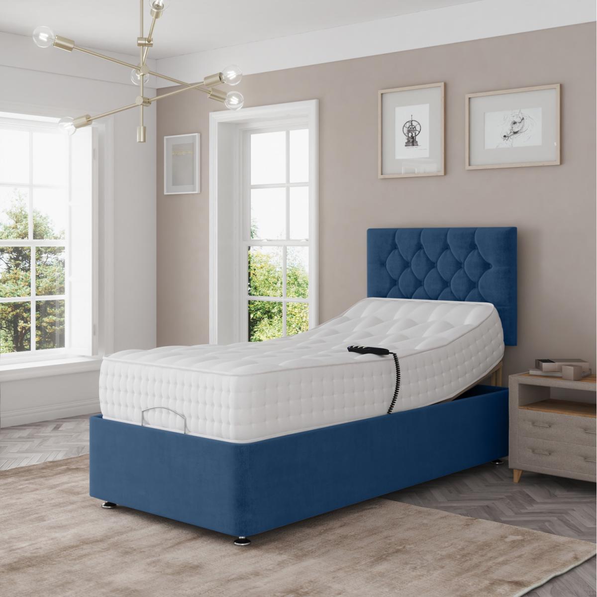 Full bed set includes headboard base and mattress. Transform your sleep experience with our advanced electric adjustable bed, designed to provide the ultimate in personalised comfort and support. Featuring a 5-motion adjustable base, you can effortlessly lift the head and foot sides at the push of a button, allowing for tailored positions that enhance your comfort and make getting in and out of bed a breeze. Crafted with a premium pocket sprung mattress, our bed ensures optimal support, providing a restful night's sleep while maintaining durability. The German engineering mechanism guarantees a whisper-quiet operation, so you can adjust your position without disturbing your peace. Easy to Operate: The bed comes with an intuitive 6-button remote control, offering multiple adjustable positions to suit your personal needs. Whether you need to raise your legs for improved circulation, elevate your head for better posture, or find a comfortable sleeping angle, this bed has you covered. Can take up to 25 stones Designed for Comfort and Health: This bed is ideal for individuals suffering from conditions such as Arthritis, Osteoporosis, COPD, Rheumatoid Arthritis, or Oedema. It provides relief from back pain, reduces snoring, and improves breathing by enhancing your posture. It also helps with reduced swelling and promotes better circulation, ensuring that you wake up refreshed and pain-free. With a 5-year manufacturer's warranty, you can enjoy peace of mind knowing your investment is protected. Whether for personal use or as a therapeutic solution, this adjustable bed delivers quality craftsmanship and unparalleled comfort. Singles,Doubles come in a single frame single mattress, King size and Super king comes with twix bed and mattress