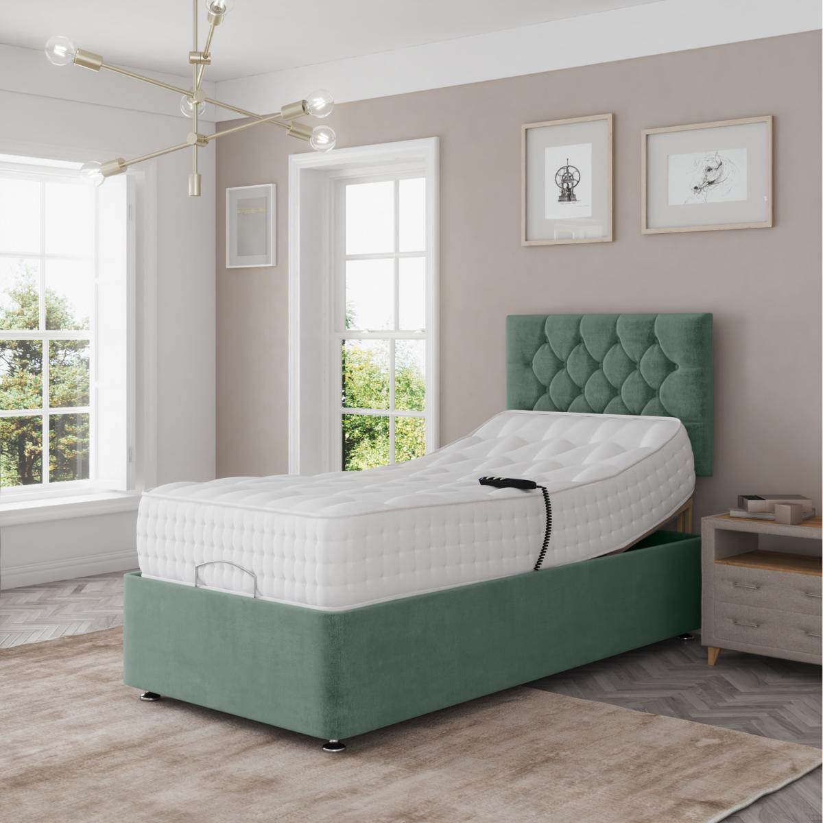 Full bed set includes headboard base and mattress. Transform your sleep experience with our advanced electric adjustable bed, designed to provide the ultimate in personalised comfort and support. Featuring a 5-motion adjustable base, you can effortlessly lift the head and foot sides at the push of a button, allowing for tailored positions that enhance your comfort and make getting in and out of bed a breeze. Crafted with a premium pocket sprung mattress, our bed ensures optimal support, providing a restful night's sleep while maintaining durability. The German engineering mechanism guarantees a whisper-quiet operation, so you can adjust your position without disturbing your peace. Easy to Operate: The bed comes with an intuitive 6-button remote control, offering multiple adjustable positions to suit your personal needs. Whether you need to raise your legs for improved circulation, elevate your head for better posture, or find a comfortable sleeping angle, this bed has you covered. Can take up to 25 stones Designed for Comfort and Health: This bed is ideal for individuals suffering from conditions such as Arthritis, Osteoporosis, COPD, Rheumatoid Arthritis, or Oedema. It provides relief from back pain, reduces snoring, and improves breathing by enhancing your posture. It also helps with reduced swelling and promotes better circulation, ensuring that you wake up refreshed and pain-free. With a 5-year manufacturer's warranty, you can enjoy peace of mind knowing your investment is protected. Whether for personal use or as a therapeutic solution, this adjustable bed delivers quality craftsmanship and unparalleled comfort. Singles,Doubles come in a single frame single mattress, King size and Super king comes with twix bed and mattress