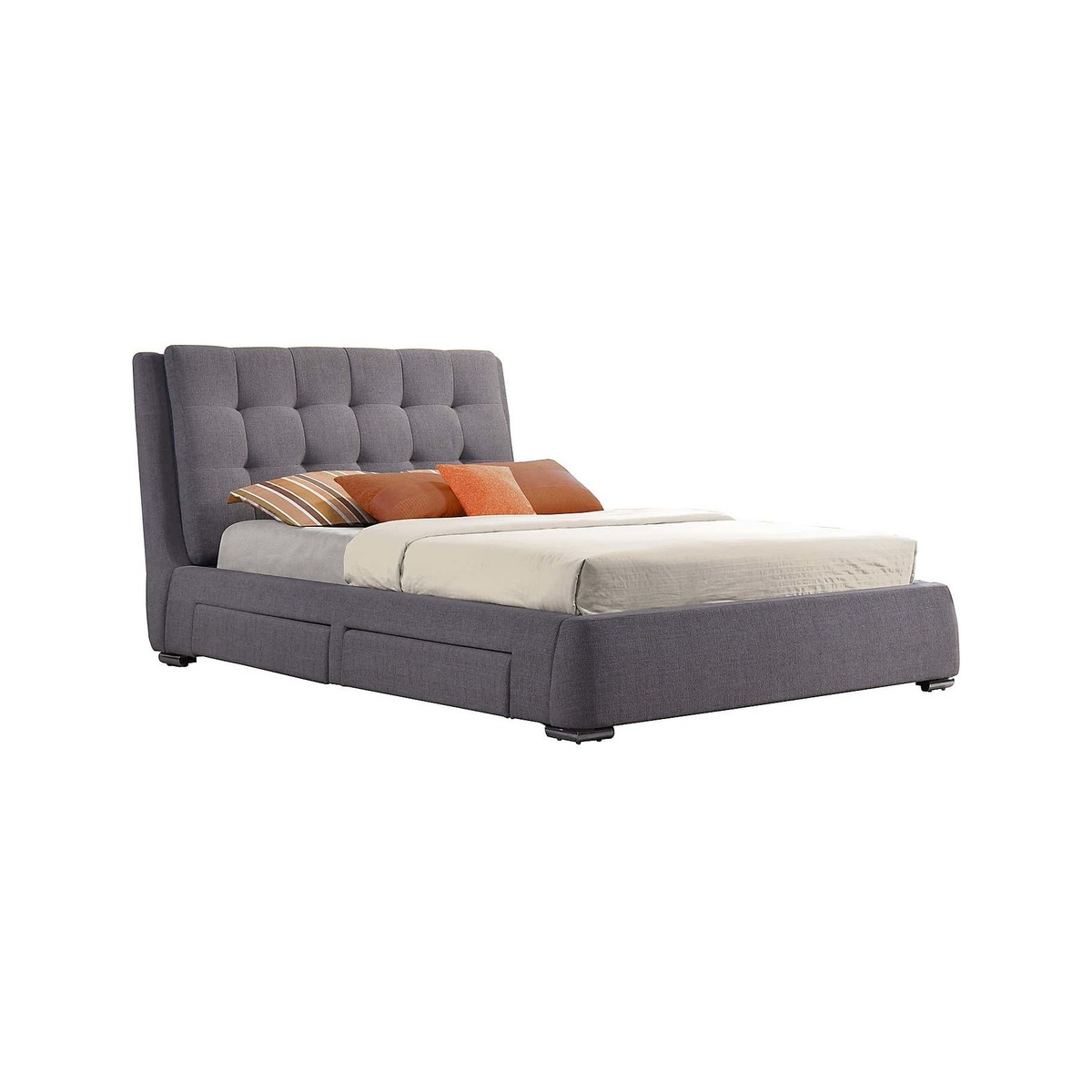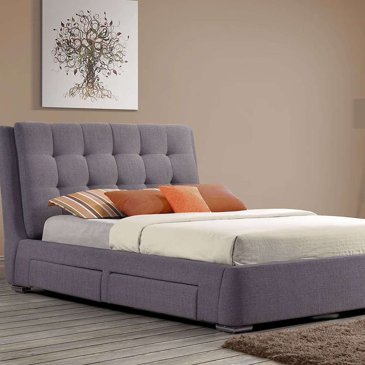Perfect for adding a comfortable and stylish addition to your bedroom, this Madison bedstead is glamourous and ensures you get a good night's sleep. In a modern grey colourway, this bedstead compliments any bedroom interior and bedding and its timeless design means you can keep it for years and years. Crafted with a low, sprung-slatted frame with four storage drawers, this easy to assemble textured grey bedstead features a square, deep-buttoned headboard and is available in a choice of sizes. This bedstead comes with a 12 month guarantee.