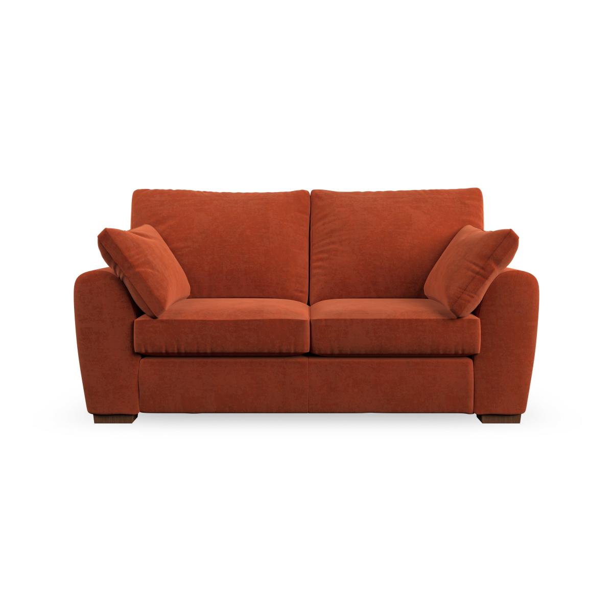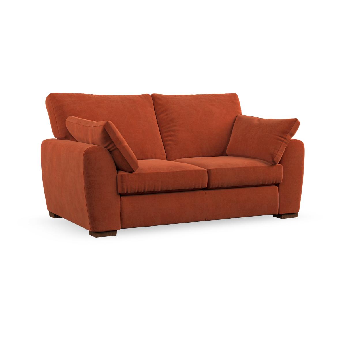 I’m a fan of the Madison two-seater in that rich orange-umber velvet because its rounded arms and deep seat feel both modern and inviting. The durable, low-sheen pile works brilliantly in mid-century or contemporary schemes, where you might contrast it against pale walls or pair it with natural timber accents. For styling, keep accessories simple: a neutral wool rug underneath, a sculptural side table in light oak and a couple of scatter cushions in muted terracotta or olive will let the sofa remain the focal point.