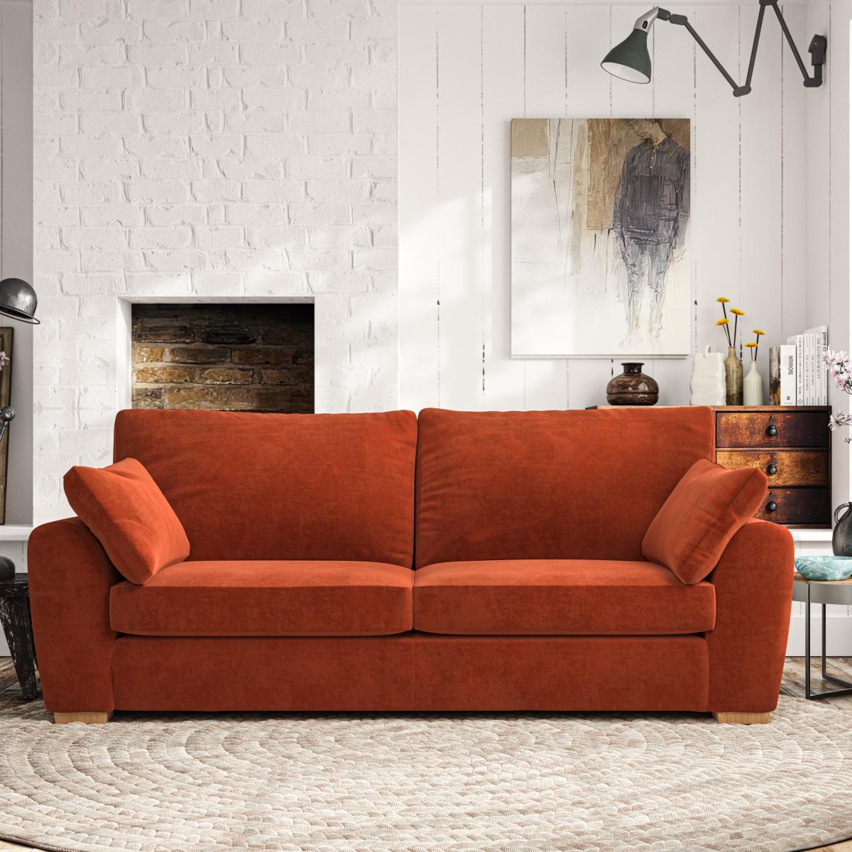 Madison Large 3 Seater Sofa Luxury Velvet Orange Umber