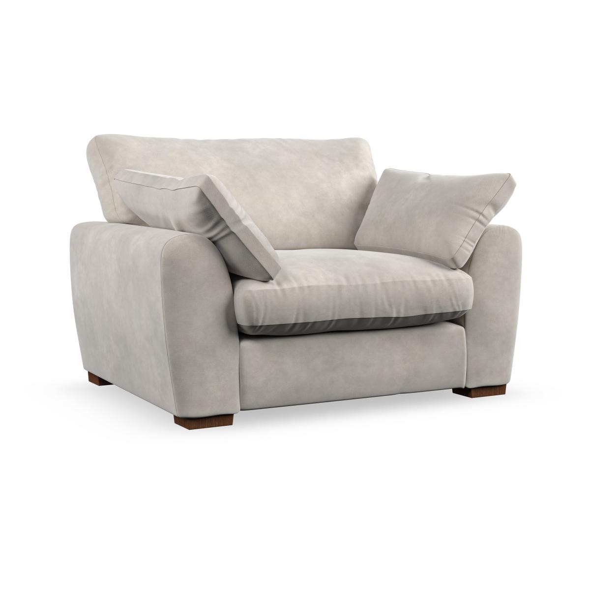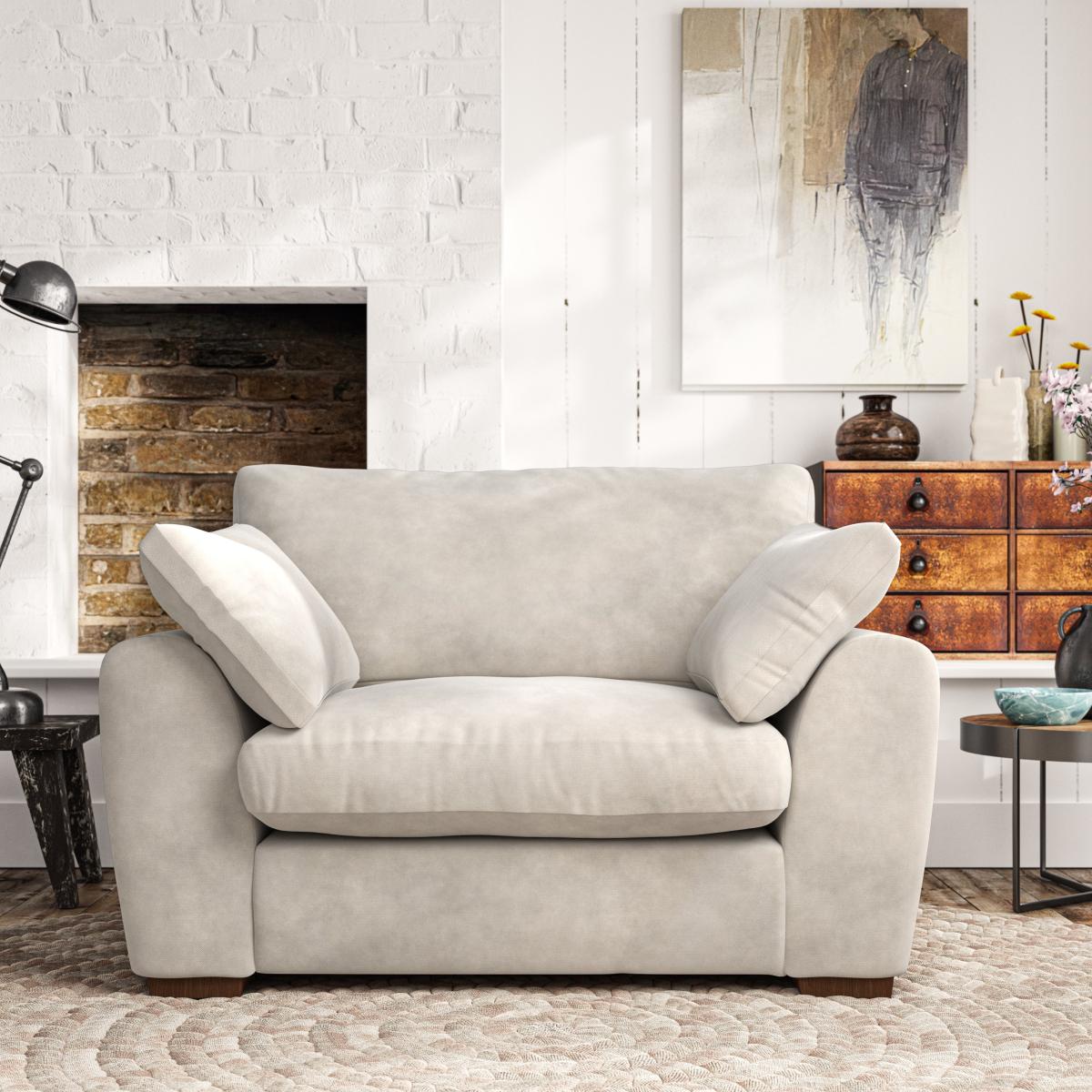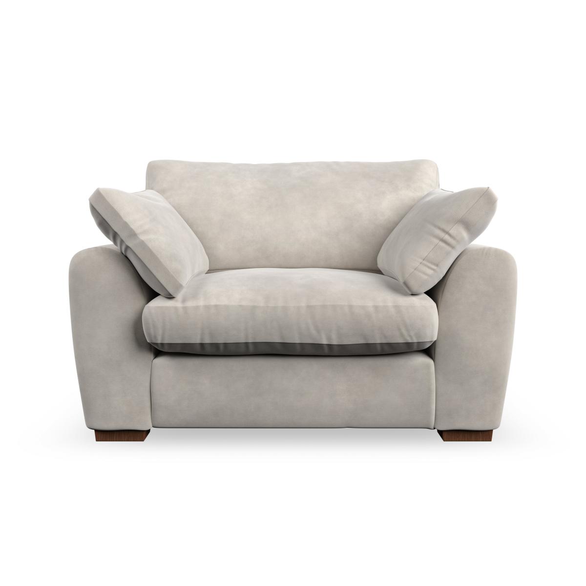 * Timeless style* Pebble pillow top arms* Choose fabric type, leg colour and cushion filling This chair's soft, pebble-shaped arms and generously filled fibre arm pads create a snug, lounge-worthy feel, while the higher back cushion, filled with plush fibre, provides excellent support for your back and shoulders. Built with serpentine seat springs for durability and long-lasting comfort, this chair is designed to offer relaxation for years to come. Customise your Madison Snuggle Chair by choosing from a variety of fabric types, leg colours, and cushion fillings, with options including a supportive foam seat or a more relaxed fibre-filled seat.