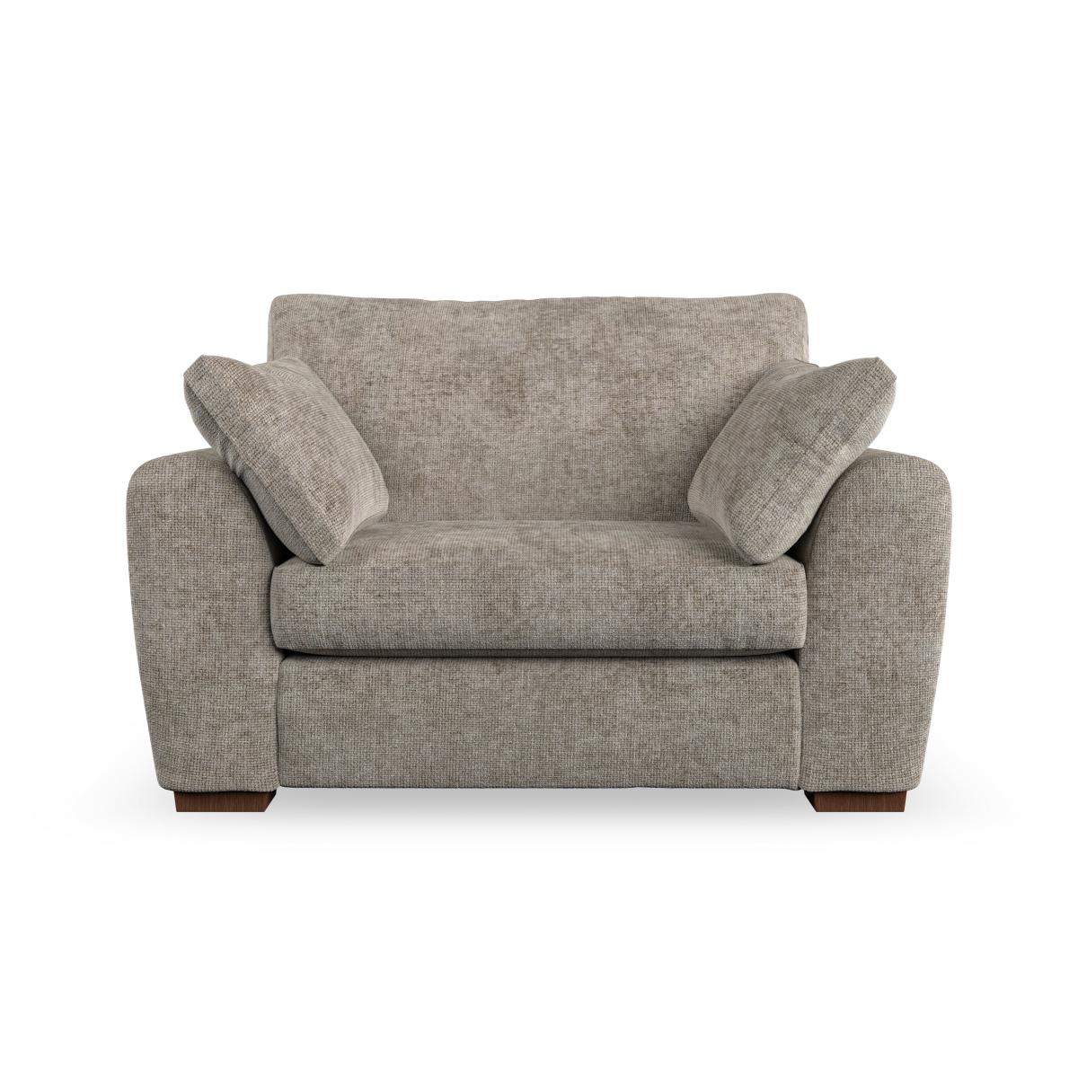 * Timeless style* Pebble pillow top arms* Choose fabric type, leg colour and cushion filling This chair's soft, pebble-shaped arms and generously filled fibre arm pads create a snug, lounge-worthy feel, while the higher back cushion, filled with plush fibre, provides excellent support for your back and shoulders. Built with serpentine seat springs for durability and long-lasting comfort, this chair is designed to offer relaxation for years to come. Customise your Madison Snuggle Chair by choosing from a variety of fabric types, leg colours, and cushion fillings, with options including a supportive foam seat or a more relaxed fibre-filled seat.
