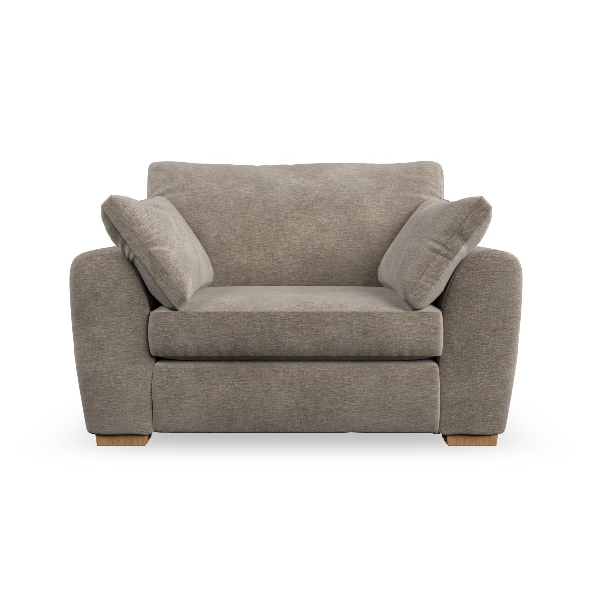 I really like this sofa because of its plush chenille fabric, which adds a cosy, inviting feel to any space. The 'Madison Snuggle Chair' works well in both contemporary and rustic interiors, thanks to its neutral mushroom tone that pairs easily with a variety of colour schemes. It's a practical choice for smaller living areas or as a cosy corner piece in larger open-plan rooms. For styling, consider layering with textured cushions in complementary shades or soft throws to enhance its inviting appeal. Pairing it with mid-century or vintage wooden furniture can also create a warm, balanced aesthetic. This sofa's understated elegance and comfort make it a versatile addition for anyone looking to add a touch of relaxed luxury.