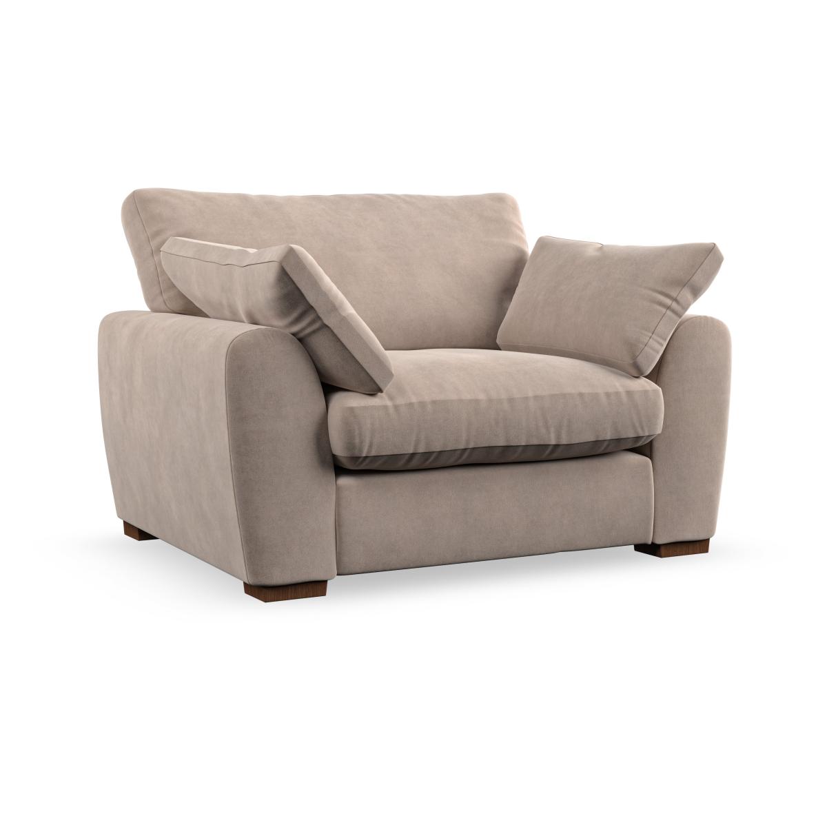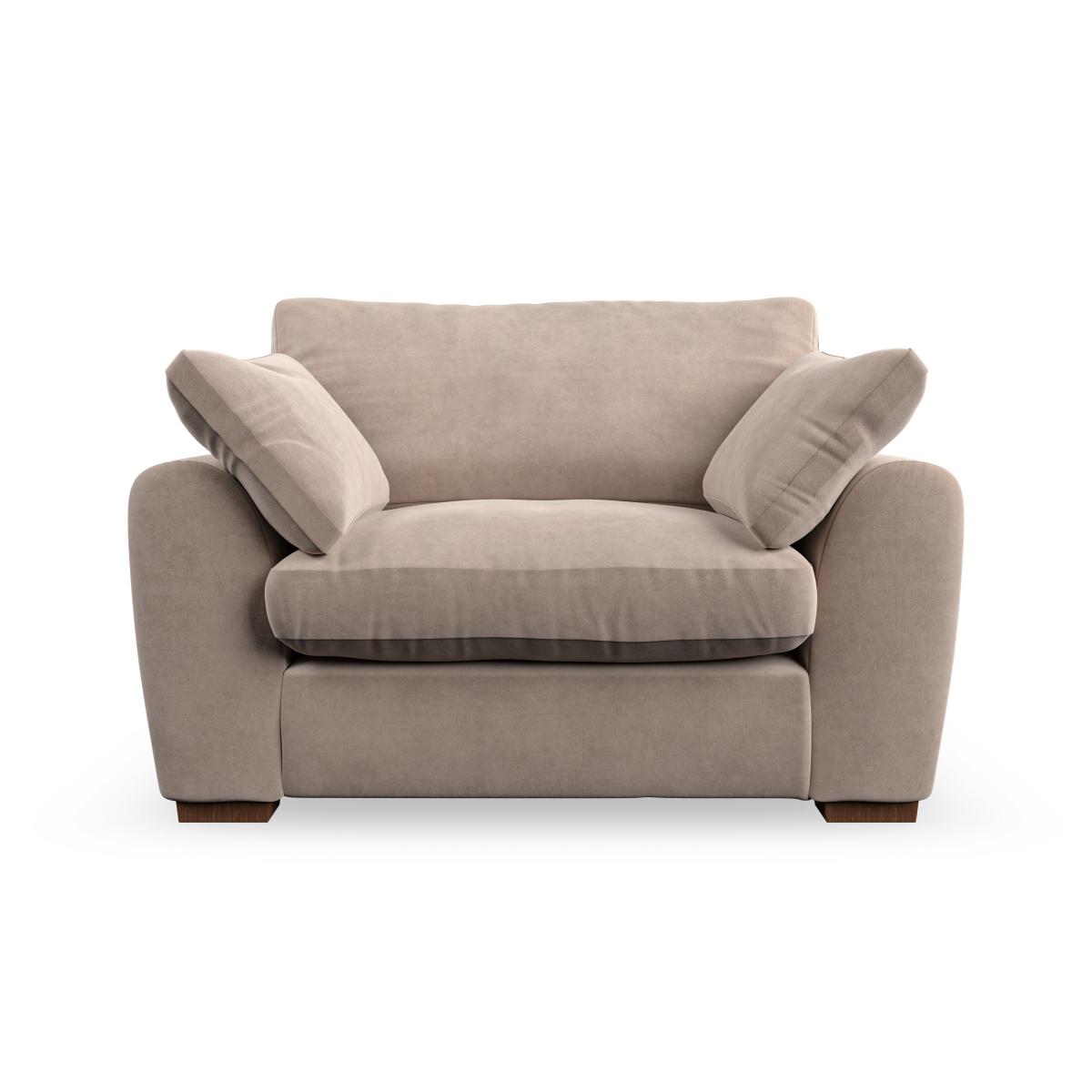 * Timeless style* Pebble pillow top arms* Choose fabric type, leg colour and cushion filling This chair's soft, pebble-shaped arms and generously filled fibre arm pads create a snug, lounge-worthy feel, while the higher back cushion, filled with plush fibre, provides excellent support for your back and shoulders. Built with serpentine seat springs for durability and long-lasting comfort, this chair is designed to offer relaxation for years to come. Customise your Madison Snuggle Chair by choosing from a variety of fabric types, leg colours, and cushion fillings, with options including a supportive foam seat or a more relaxed fibre-filled seat.