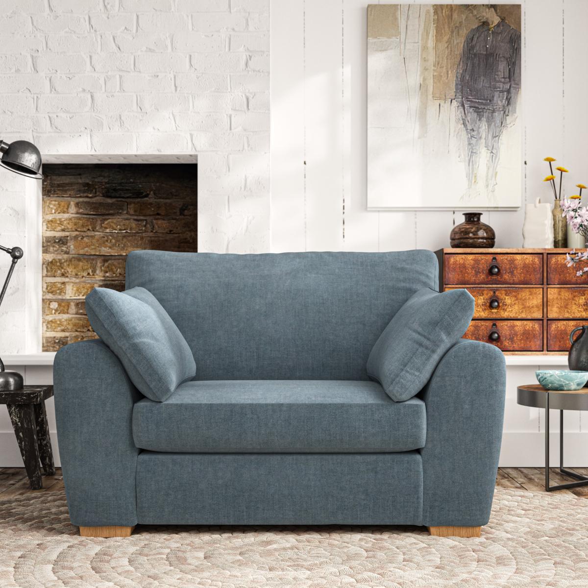 * Timeless style* Pebble pillow top arms* Choose fabric type, leg colour and cushion filling This chair's soft, pebble-shaped arms and generously filled fibre arm pads create a snug, lounge-worthy feel, while the higher back cushion, filled with plush fibre, provides excellent support for your back and shoulders. Built with serpentine seat springs for durability and long-lasting comfort, this chair is designed to offer relaxation for years to come. Customise your Madison Snuggle Chair by choosing from a variety of fabric types, leg colours, and cushion fillings, with options including a supportive foam seat or a more relaxed fibre-filled seat.