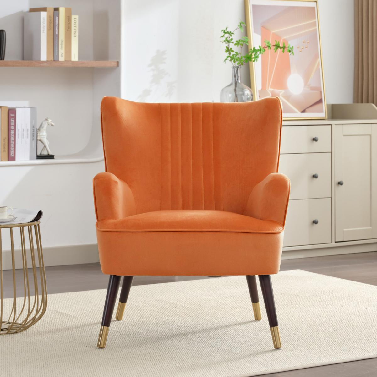 Introducing the Madison, a Wingback accent chair that embodies both timeless elegance and modern comfort. Luxuriously adorned with plush velvet fabric upholstery, the Madison features a deep foam interior for an indulgent seating experience. Its oak-colored wooden legs are adorned with brass-colored metal tips, adding a touch of opulence and sophistication to any room. The Madison's exquisite piping design further enhances its aesthetic appeal, making it a standout addition to your decor. Crafted with a sturdy wooden frame, this chair guarantees long-lasting durability. Choose from a variety of colors to match your style perfectly. With our quick and efficient delivery service, you can enjoy the Madison's exquisite charm in no time. Elevate your living space effortlessly with the Madison Wingback accent chair, where comfort meets timeless beauty.