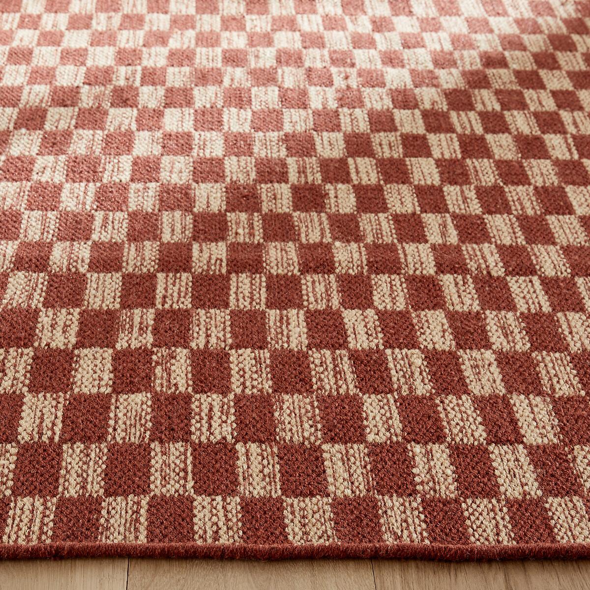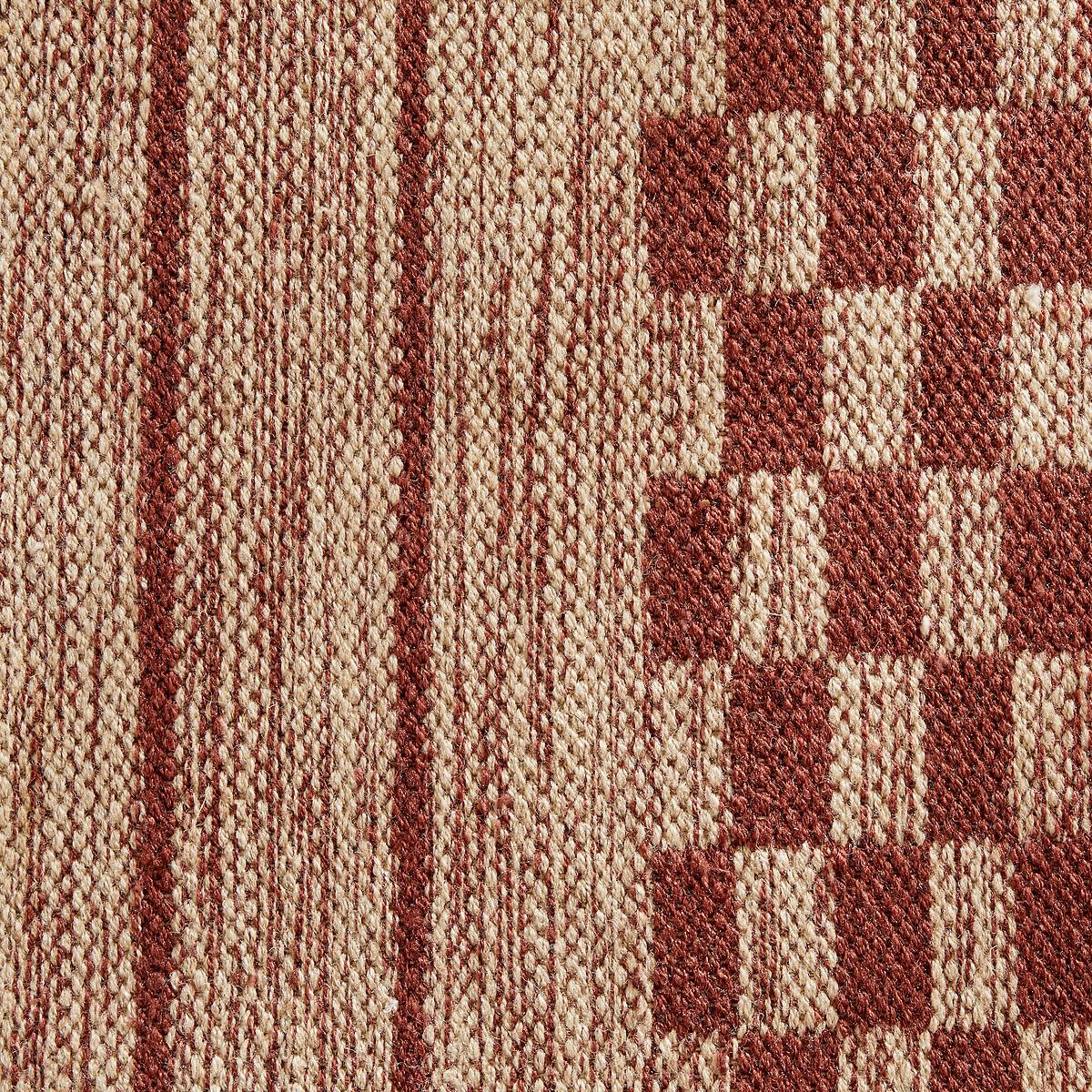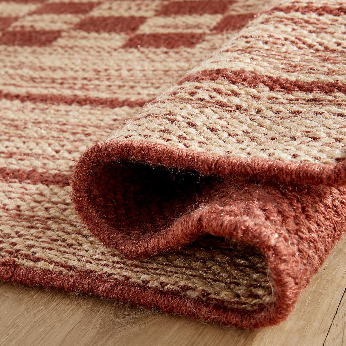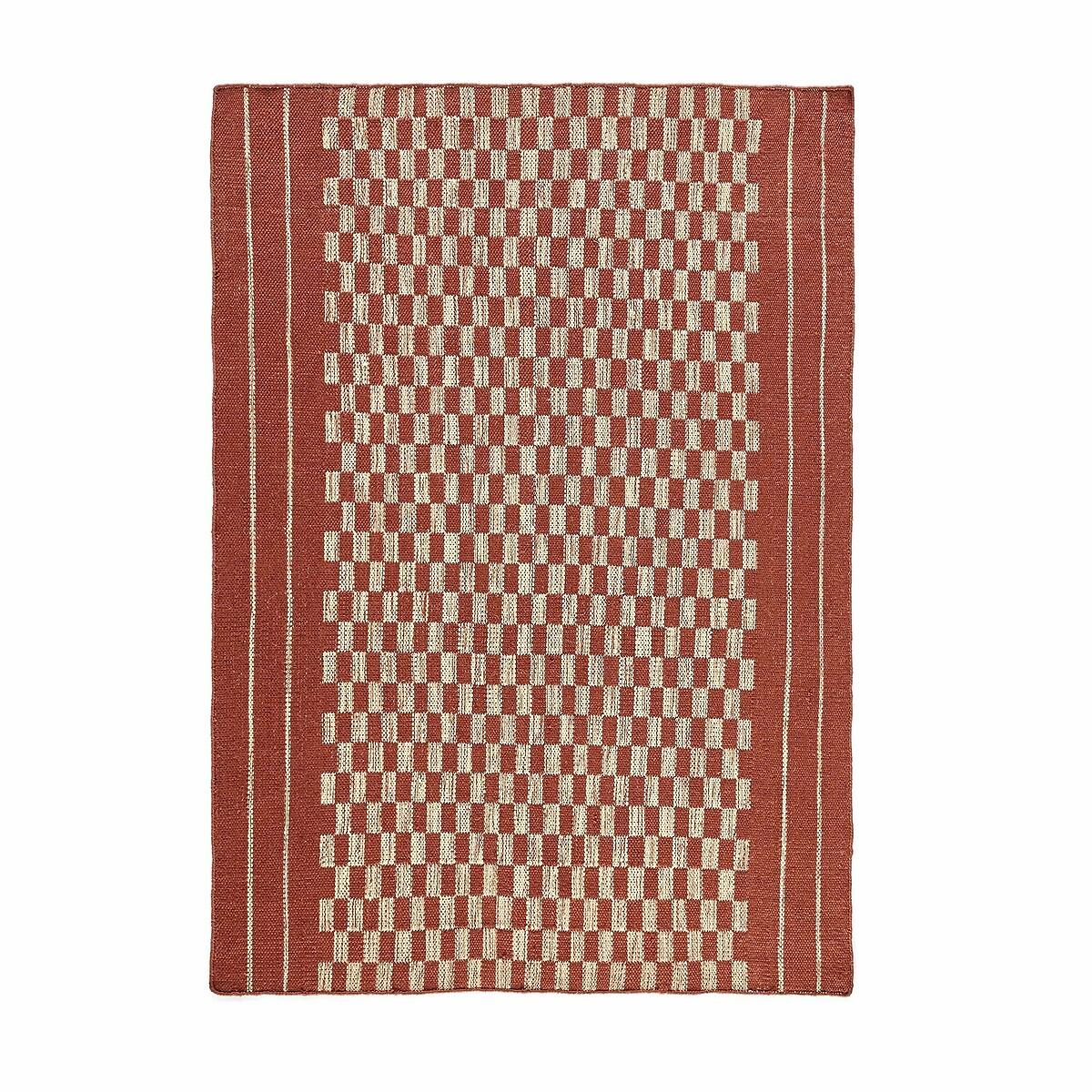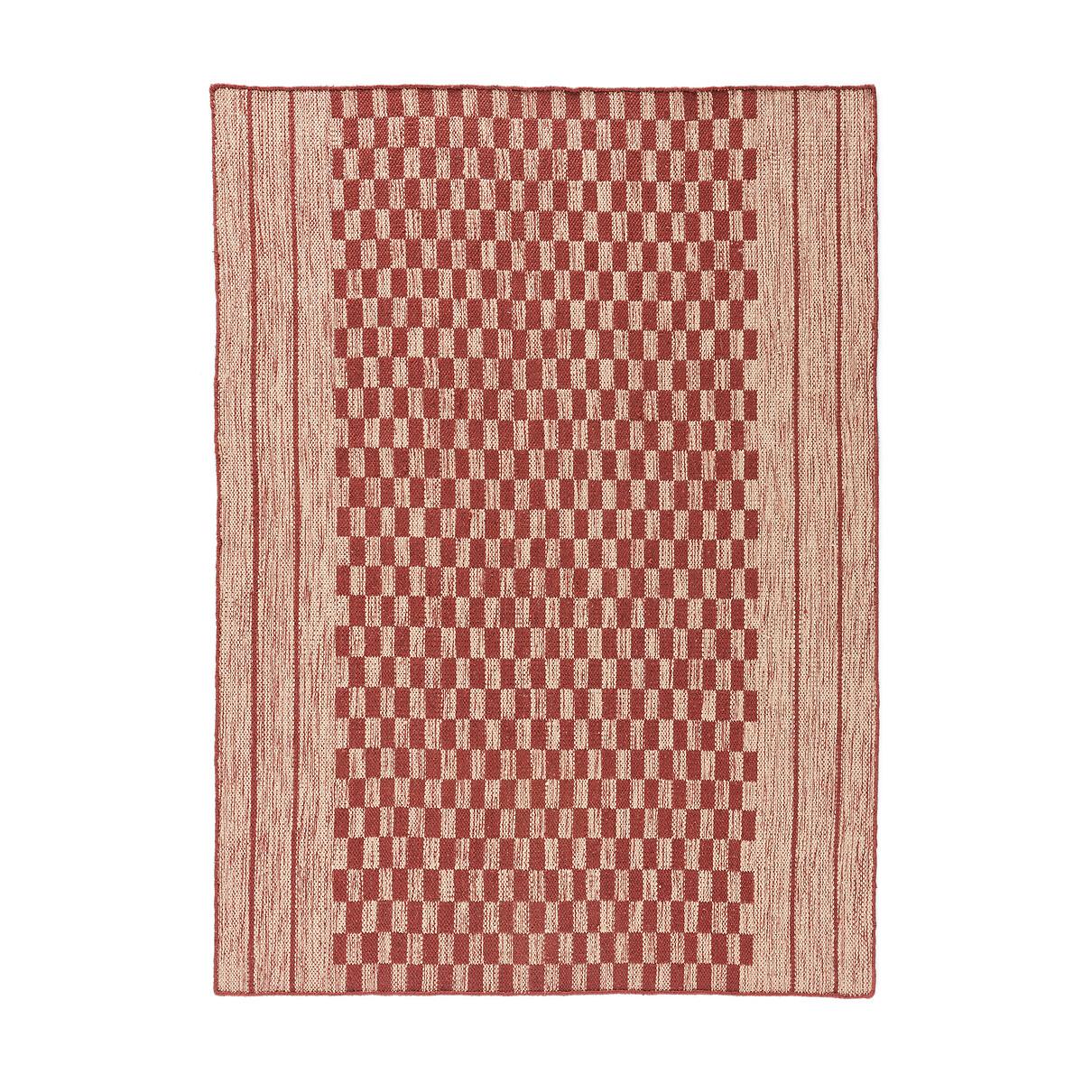 The Madotto rug. Checkerboard and terracotta are the highlights of this rug, which can be used indoors in the living room or outdoors to warm up the terrace. This rug is designed for the outdoors too; unaffected by UV and water. Product Details • 100% recycled polyester • Dried wool look • Craftsmanship: Hand woven • Weight: 1950g/m² • Thickness of rug: 8mmSizes. Size 1 • Width: 120cm • Length: 180cm. Size 2 • Width: 160cm • Length: 230cm. Size 3 • Width: 200cm • Length: 290cmDelivery:. Available for home delivery. • Recycled polyester. Using recycled polyester is all about conserving resources and reducing waste. Dimensions and weight of parcel • Size 1: 130 x 18 x 18cm. 4.8kg • Size 2: 175 x 20 x 20cm. 8.7kg • Size 3: 215 x 23 x 23cm. 13.6kg