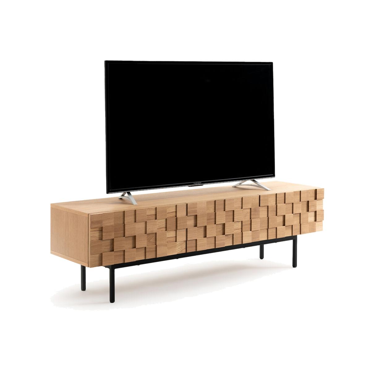 The Madria oak TV cabinet is characterised by the front of its doors which are skilfully worked in a checkerboard design. A spectacular piece of furniture to display proudly in the living room sculpted with a geometric design.