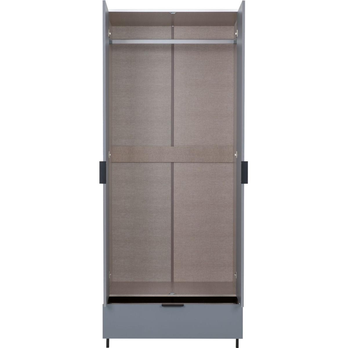 This stylish 2 door 1 drawer wardrobe is the perfect addition to you bedroom. Add a modern flare with this stunning high gloss grey and white wardrobe accented with modern black handle and legs. Can be paired with the rest of the Madrid range. UK Mainland delivery only, between 9am - 9pm (weekdays) the courier will contact you on the day of delivery to offer a time slot. This takes place within 10 working days (Ground floor only). Please also ensure that we have a note of your up-to-date address and contact information, to be passed to the couriers.