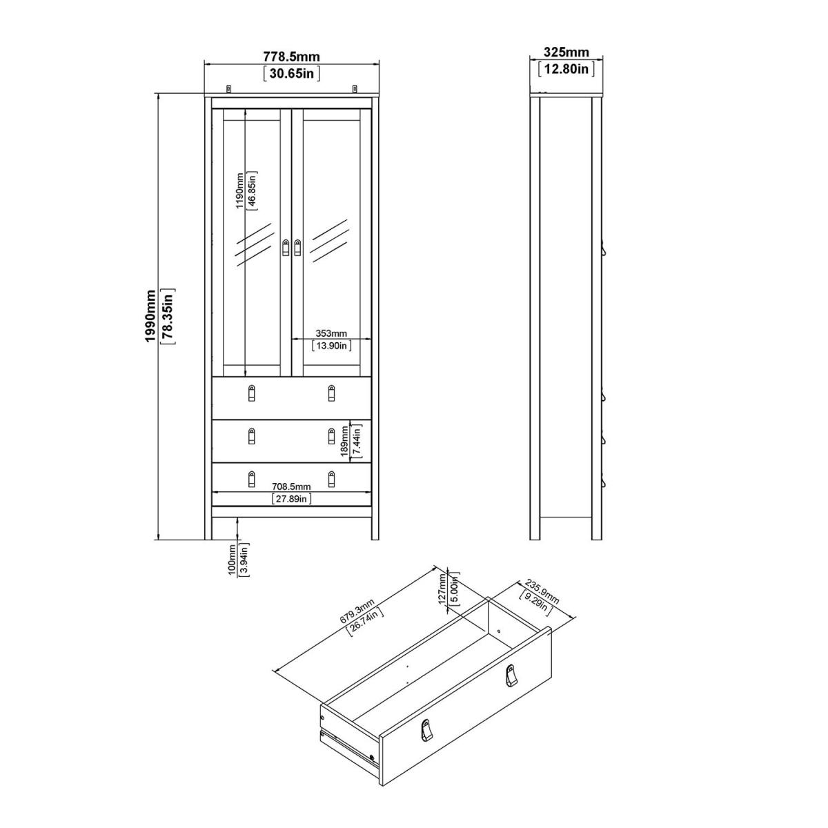 The Madrid 2-Door 3-Drawer China Cabinet is a beautiful contemporary glass display cabinet with two doors and three drawers in an elegant design, complete with simple metal handles. Suitable for putting on display in your living room, bedroom, dining room, or hallway, you can keep books, ornaments, and other things neatly organised for a sleek-looking space. Made with a high-quality laminated board that's resistant to damage and scratches, moisture, and high temperature, it's a convenient piece to use and clean.