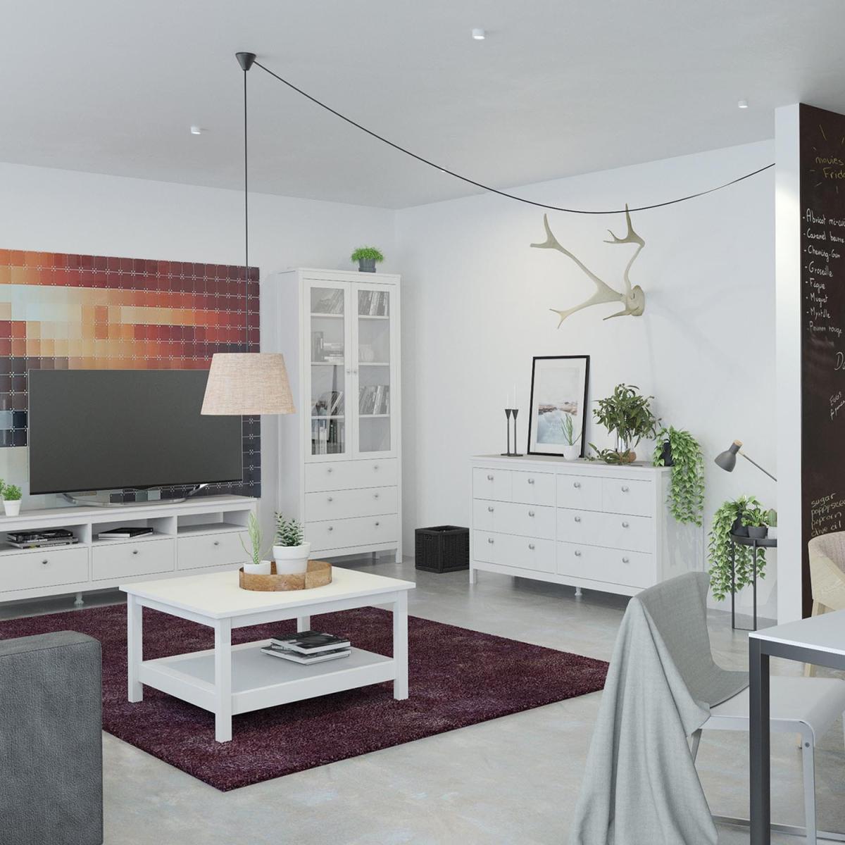 I love this piece for its versatility and classic appeal. The white finish makes it an excellent choice for brightening up both contemporary and traditional interiors, while the glass doors offer a great way to display decorative items or favourite china. It works particularly well in kitchens, dining rooms, or even a home office where storage and display are necessary. For styling, consider mixing practical items with curated displays-think a combination of colourful ceramics, glassware, or books behind the glass, and neatly organised essentials in the drawers. To keep the look fresh, try pairing it with some textured textiles or contrasting materials like rustic wood or metallic accents for a well-balanced space.