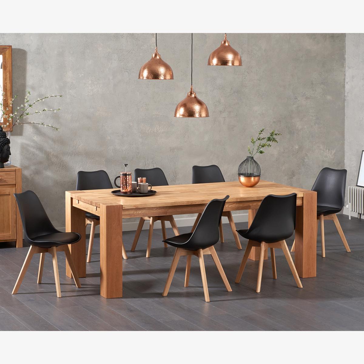 Madrid 200cm Oak Dining Table With 6 Dark Grey Duke Faux Leather Chairs