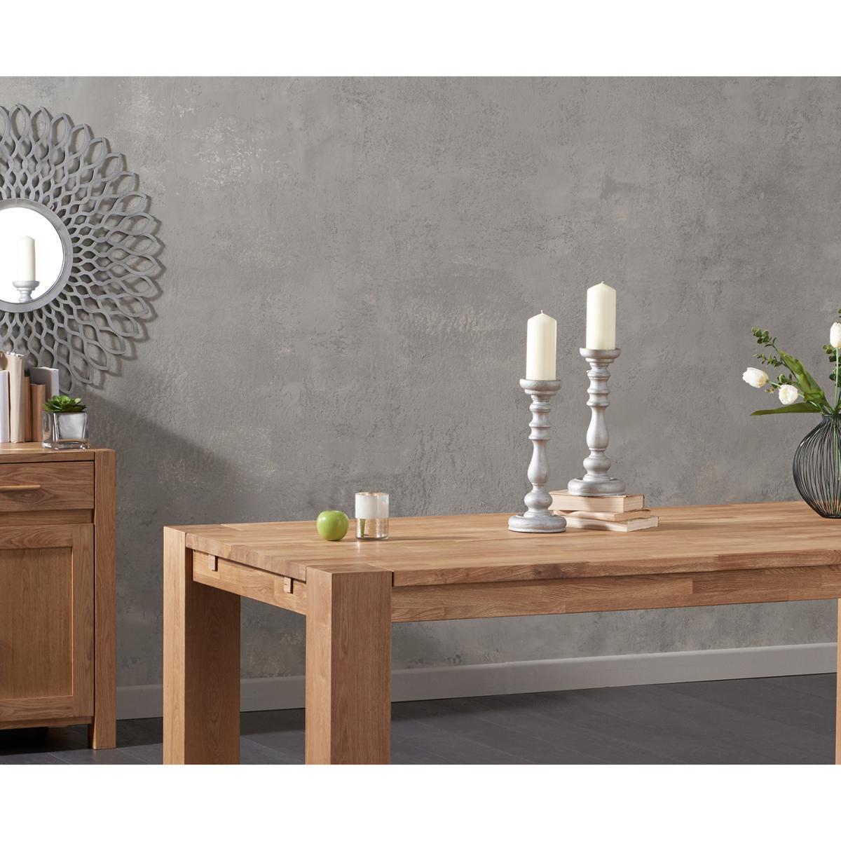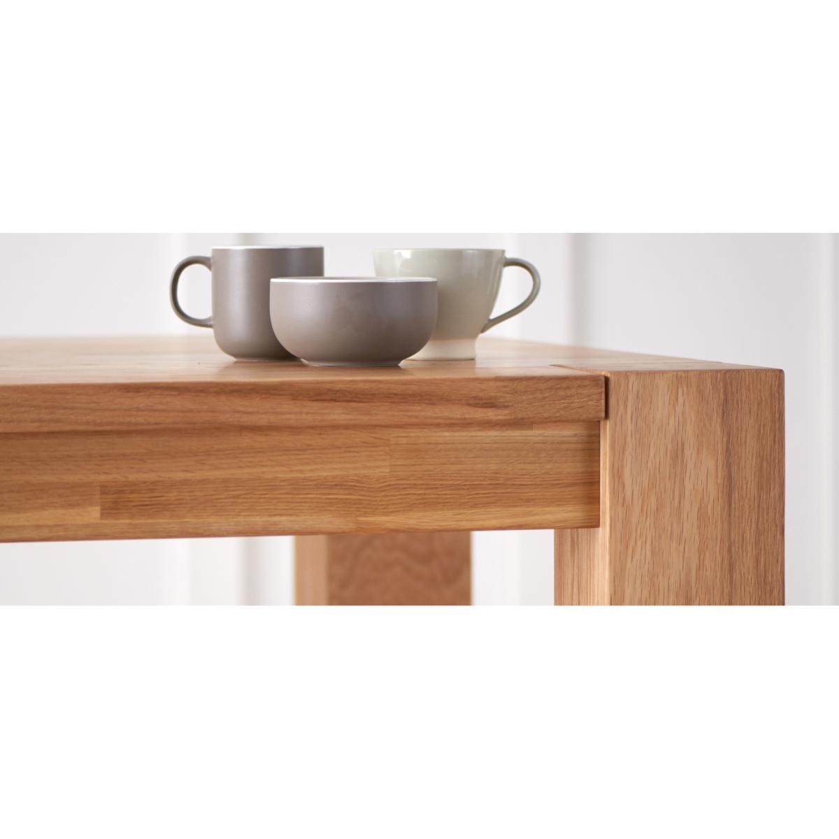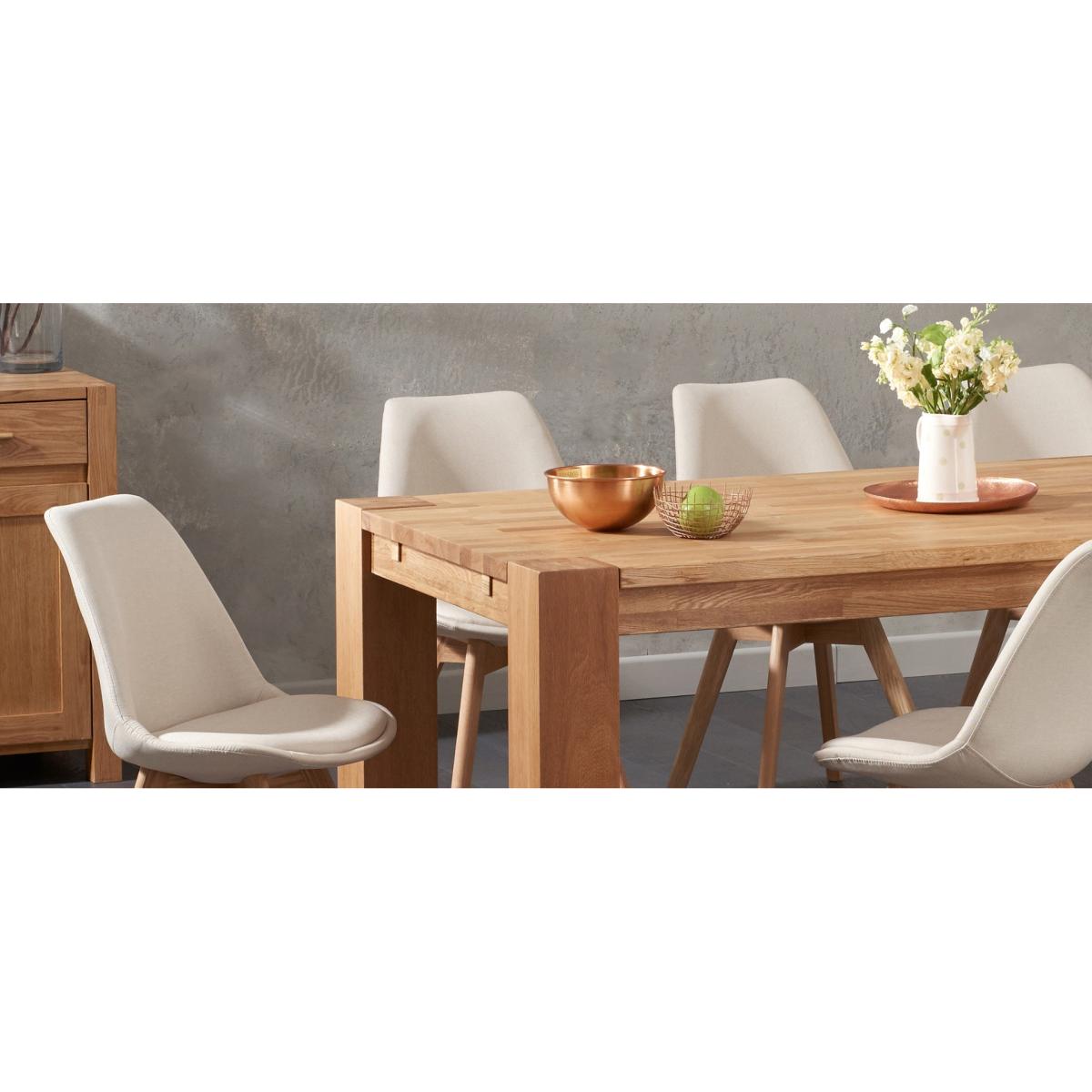 This contemporary oak table has sturdy wide legs and comes in a range of generous sizes.