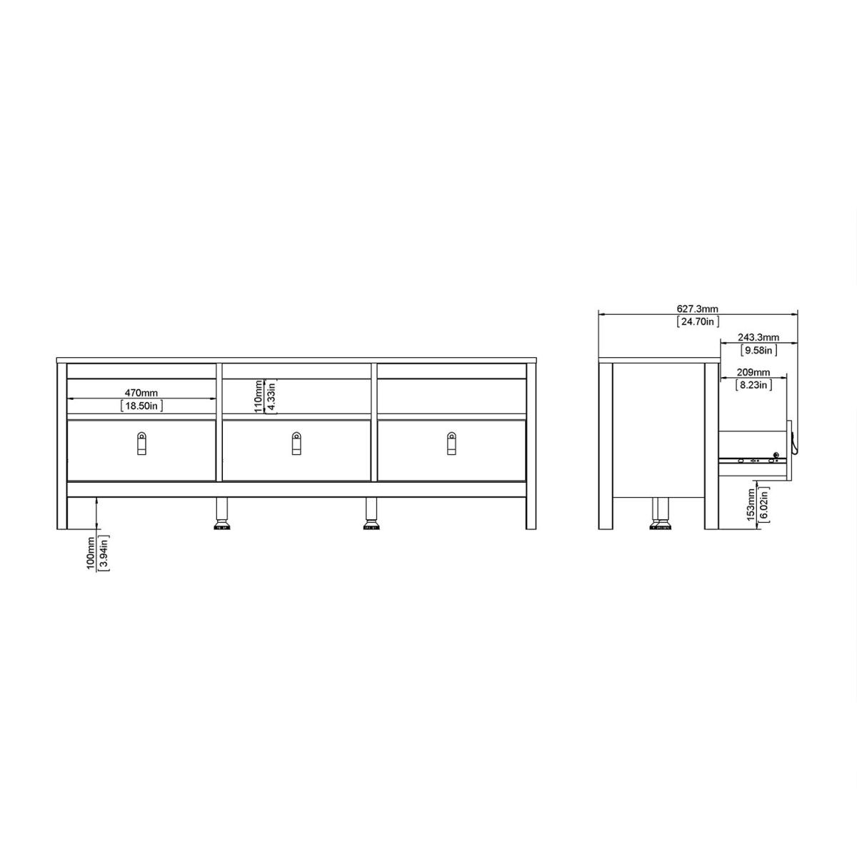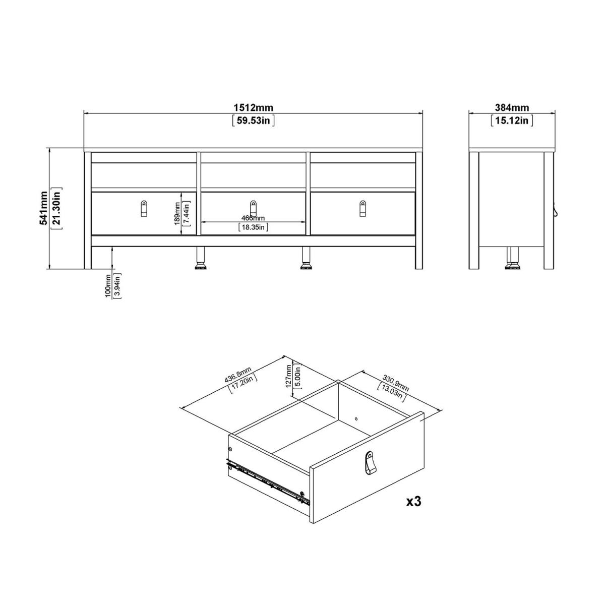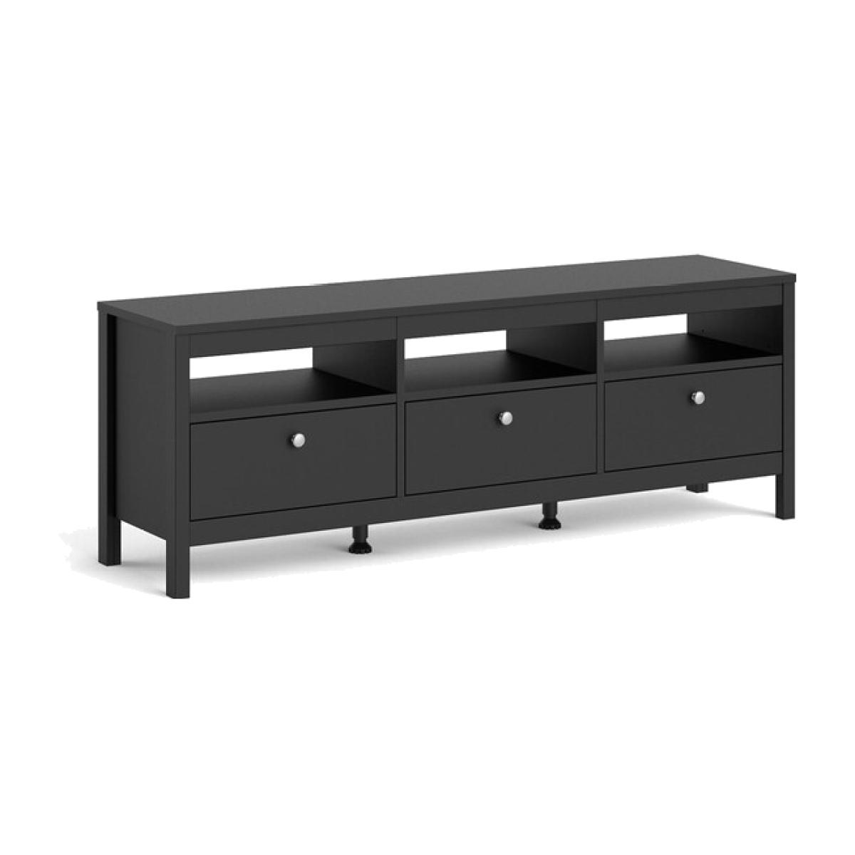 The Madrid 3-Drawer TV-Unit is a beautiful contemporary TV unit including 3 drawers for all your storage needs in an elegant design, complete with a simple metal handle. This cabinet has space for all your electronics and extra storage space within the spacious drawers. The gorgeous minimalist design makes this easy to coordinate through your home regardless of your existing decor. The unit is finished with a high-quality laminated board that's resistant to damage, scratches, moisture, and high temperature for your convenience.