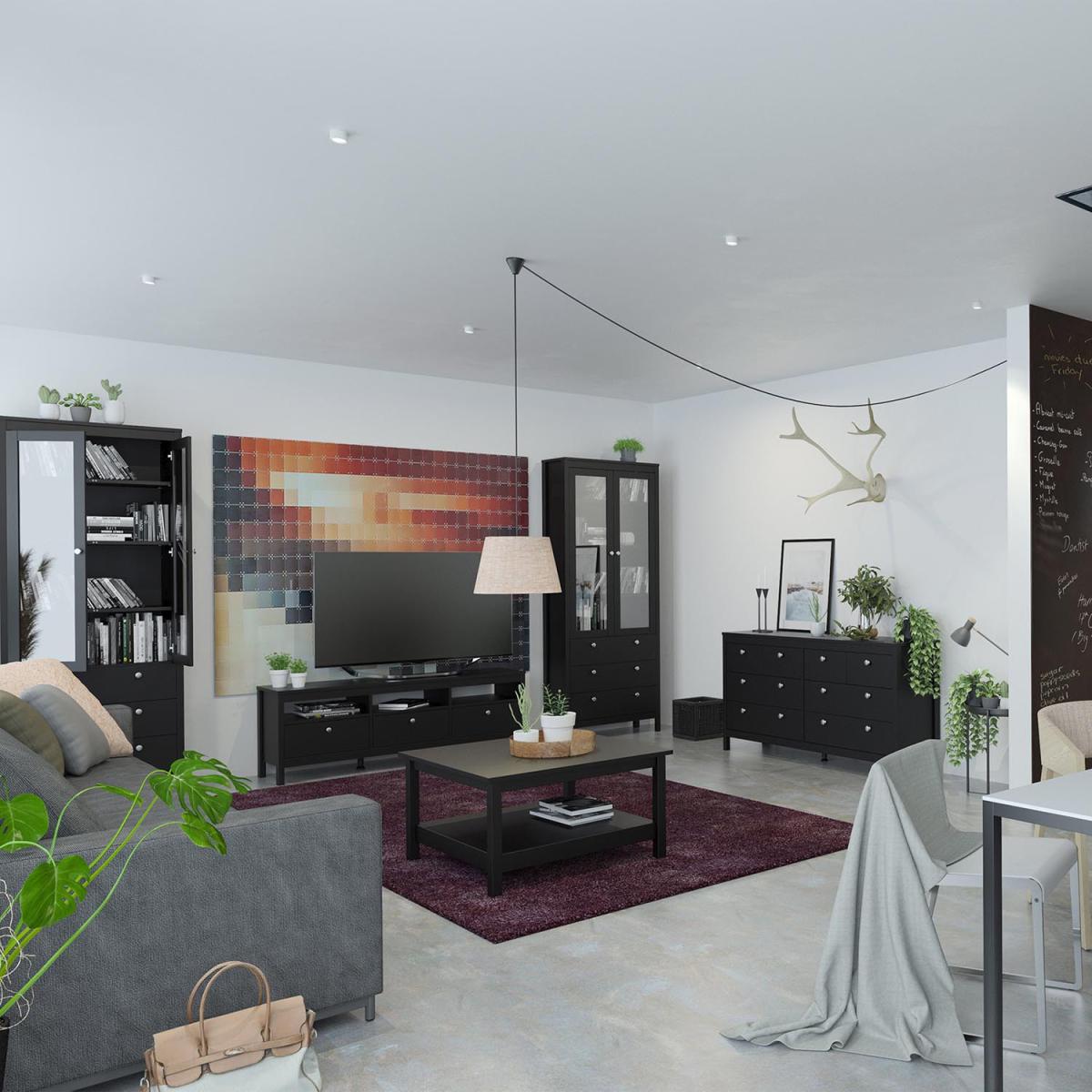 I’m a fan of this black Madrid TV unit for its blend of clean lines and handy storage - those three drawers keep remotes, cables and games tucked away, while the open shelves are perfect for a soundbar or display pieces. The matt black finish works especially well in minimalist, industrial or Scandi-inspired living rooms, pairing easily with natural wood tones or metal accents. Styling it is simple: keep cables concealed behind the unit for a neat look, then layer in a couple of low-profile books or a slim plant on one open shelf and a compact speaker on another. If you’re adding decorative items on top, stick to three or five pieces (for balance) - perhaps a framed print, a small vase and a modern lamp - to maintain a streamlined, contemporary feel.
