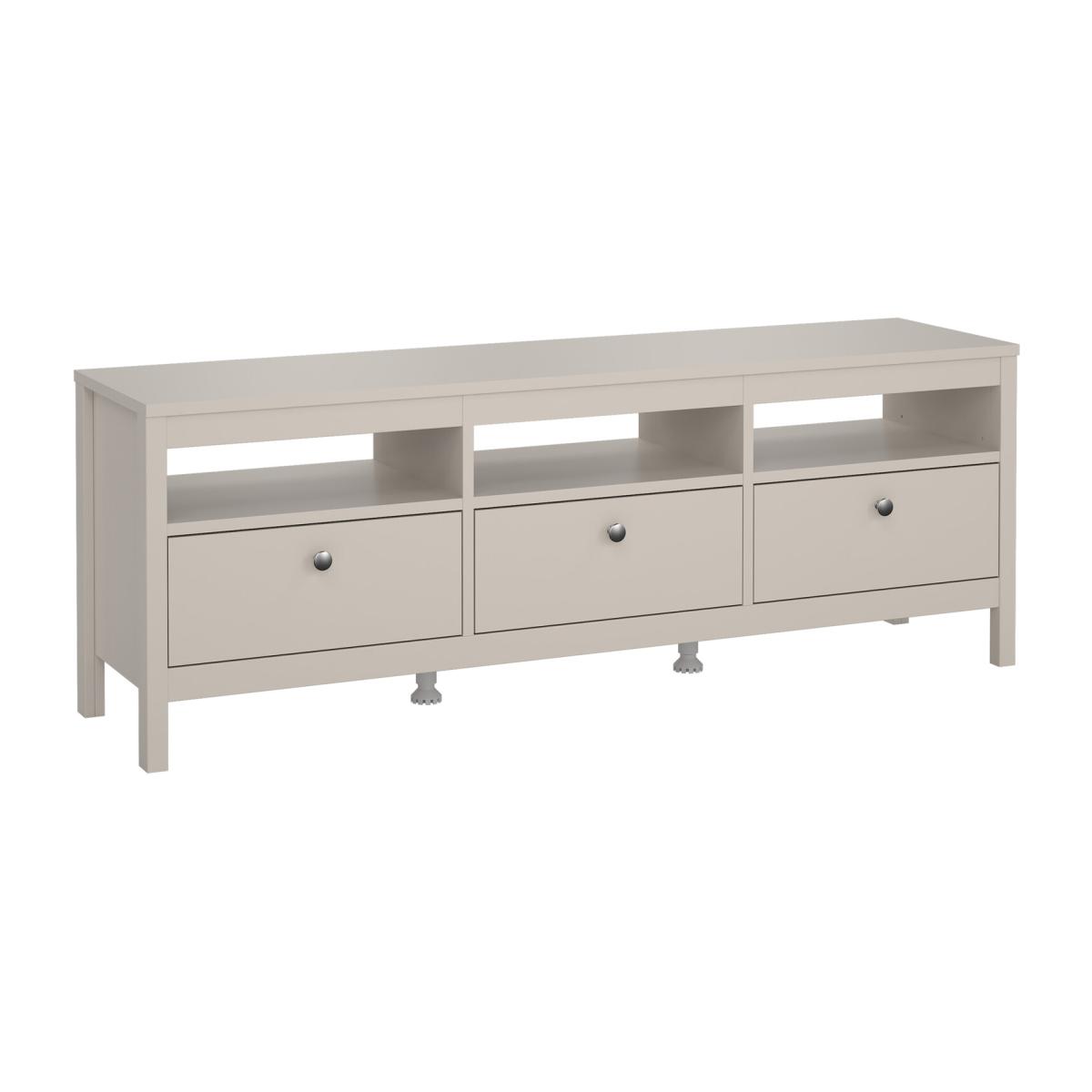 I genuinely like this TV unit because of its clean, understated look that can easily complement both contemporary and traditional interiors. The cashmere finish offers a versatile, neutral tone that works well in calming, minimalist spaces, but it can also serve as a subtle backdrop for layered textures and colours. Its three drawers provide practical storage for media accessories, keeping clutter out of sight, while the open shelves are perfect for housing media devices or display items like books or decorative vases. For styling, I recommend pairing it with sleek metallic accents or soft textiles nearby, and adding some greenery to create a relaxed yet polished vibe. This piece is especially handy in living rooms where functionality needs to go hand-in-hand with style.