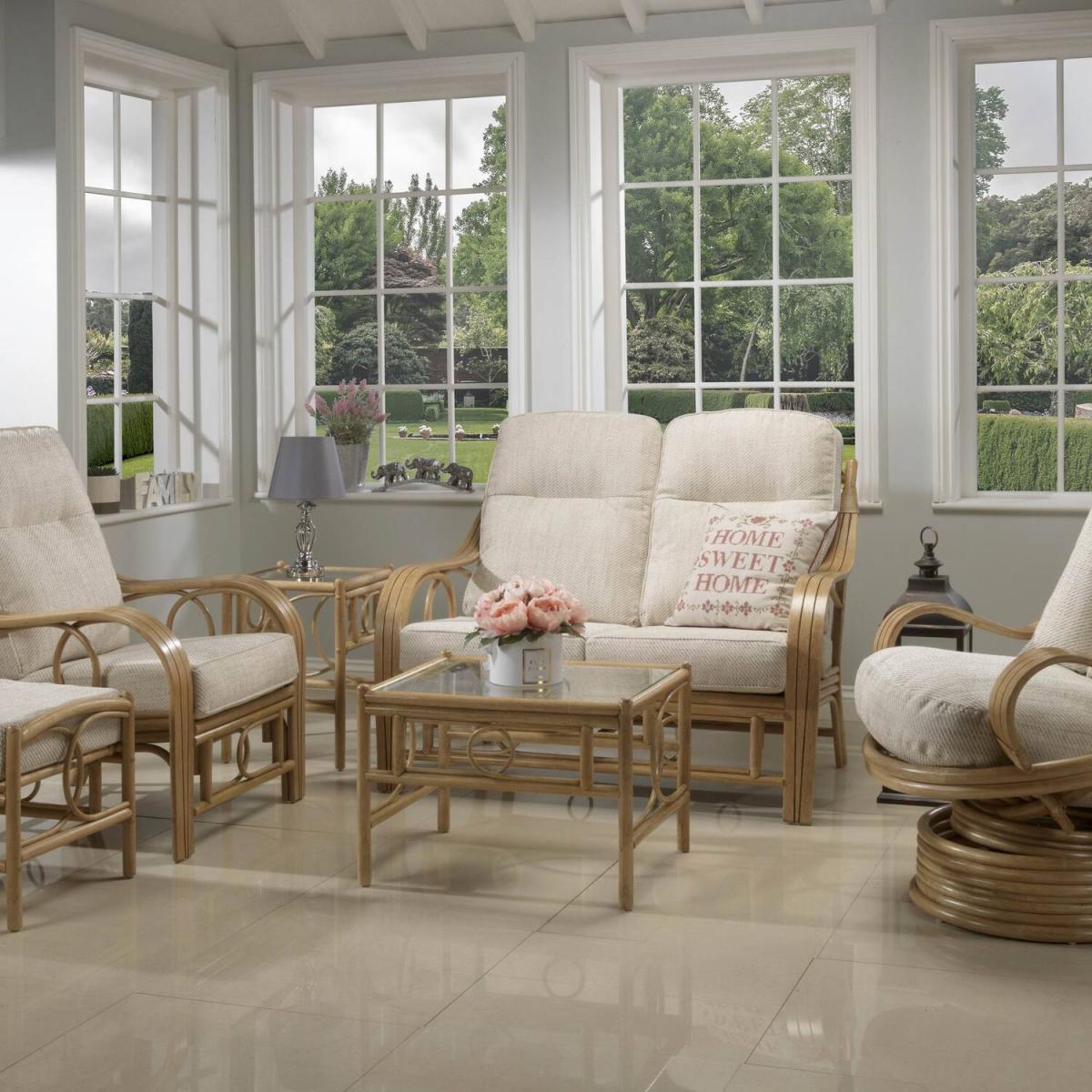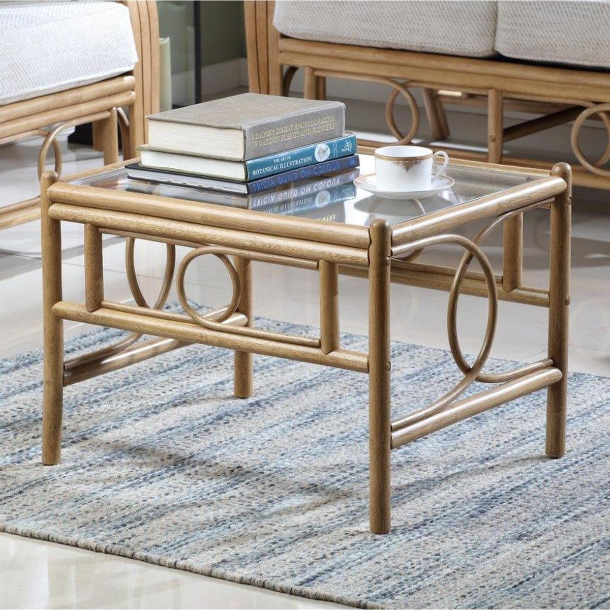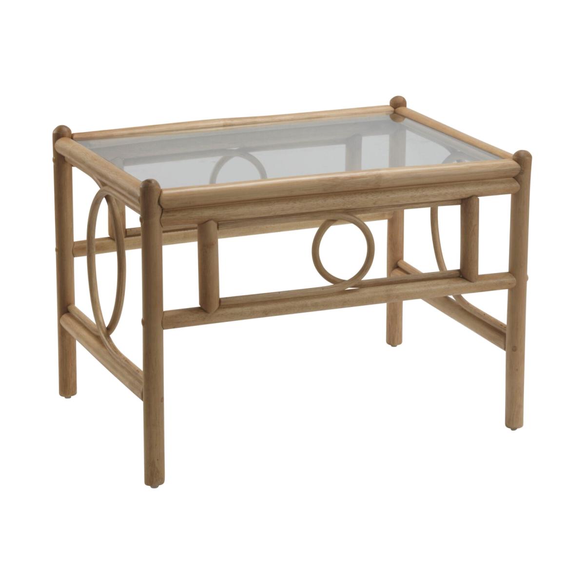 A sustainable natural rattan coffee table with 5mm toughened glass top and double pole frame structure