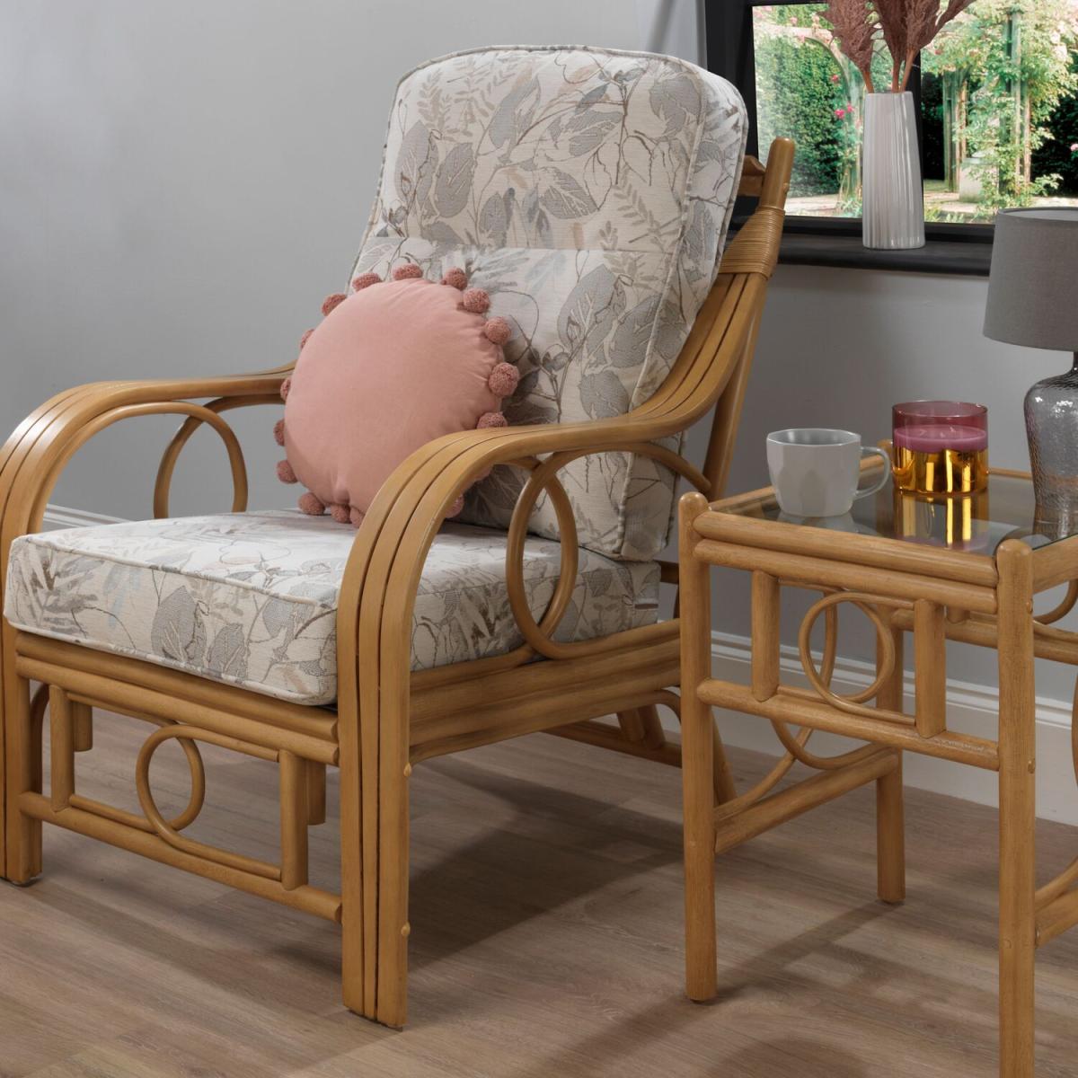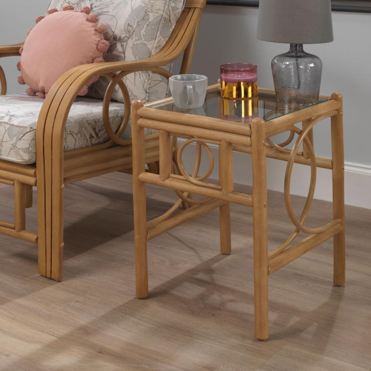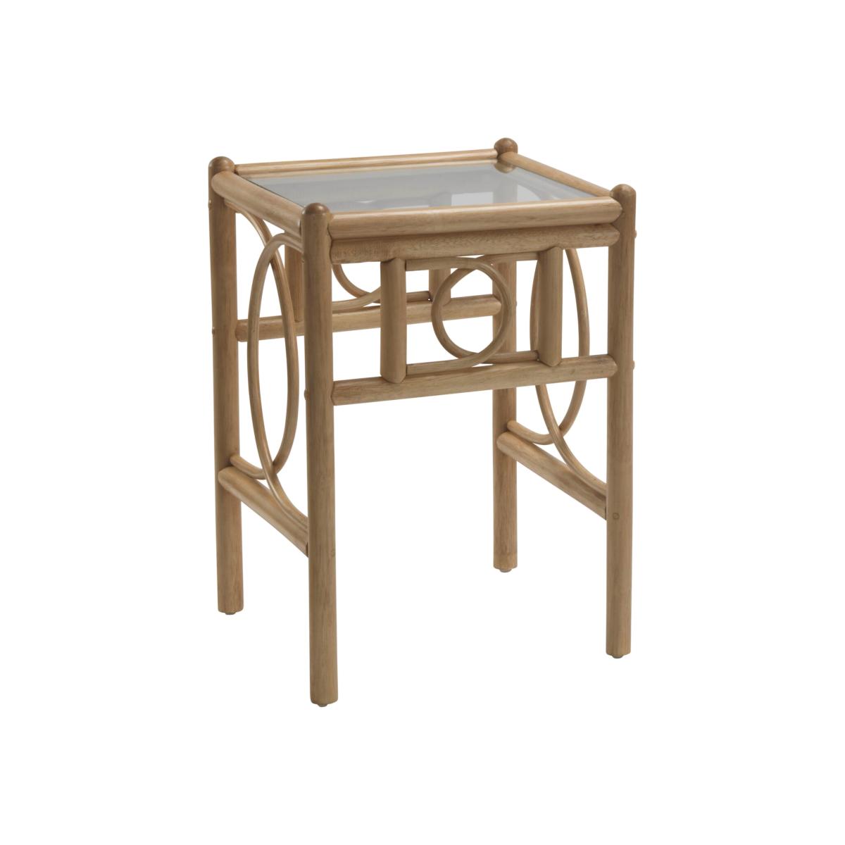 A sustainable natural rattan lamp table with 5mm toughened glass top and double pole frame structure