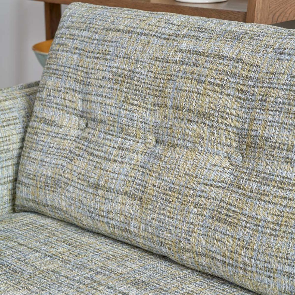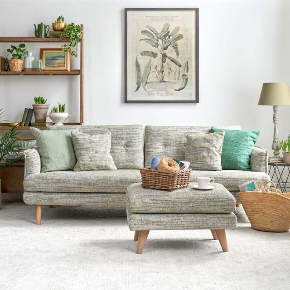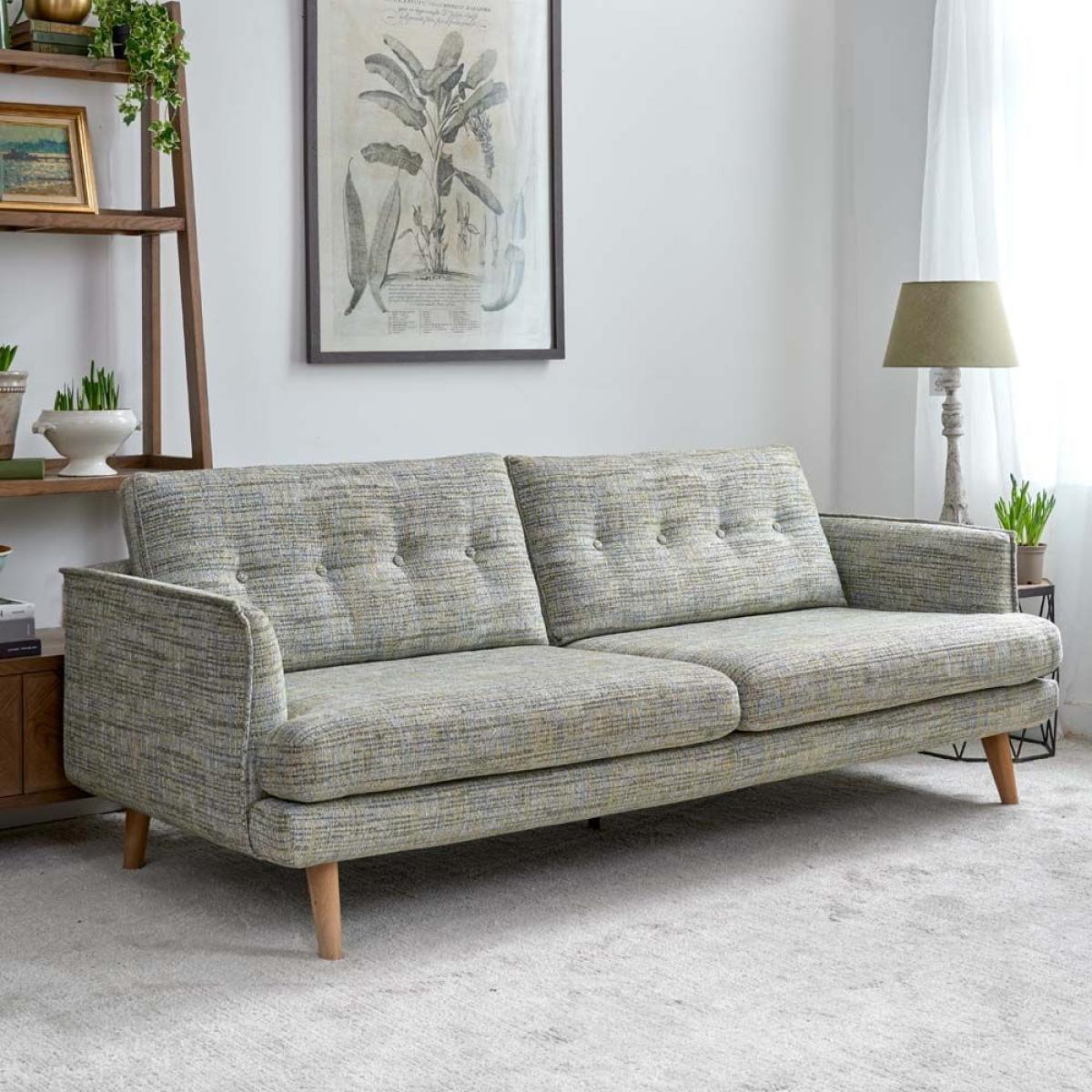 The Madrid Extra Large Sofa is a low slung sleek design with great proportions and ample seating space. The sofa easily sits three people. Handmade in the EU the sofa's quality is exceptional, and it's upholstery is neat and perfectly fitted. The rear cushions have buttoning detail while the outer edges of the arms are pipted to accentuate the line. In addition to the four oak legs, the sofa also has a central leg for additional support. Available here in Torino Springtime Cotton Weave, but with more fabric options coming soon.