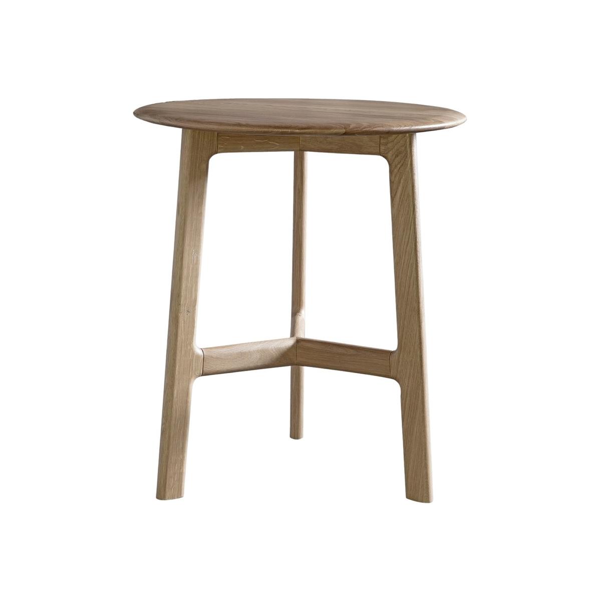Dimensions:W50 x D50 x H92 cm This small and functional side table has all the qualities of a solid Oak mid century piece that has Strong design features and elegance. Features: Matching items available t Oak assembly required