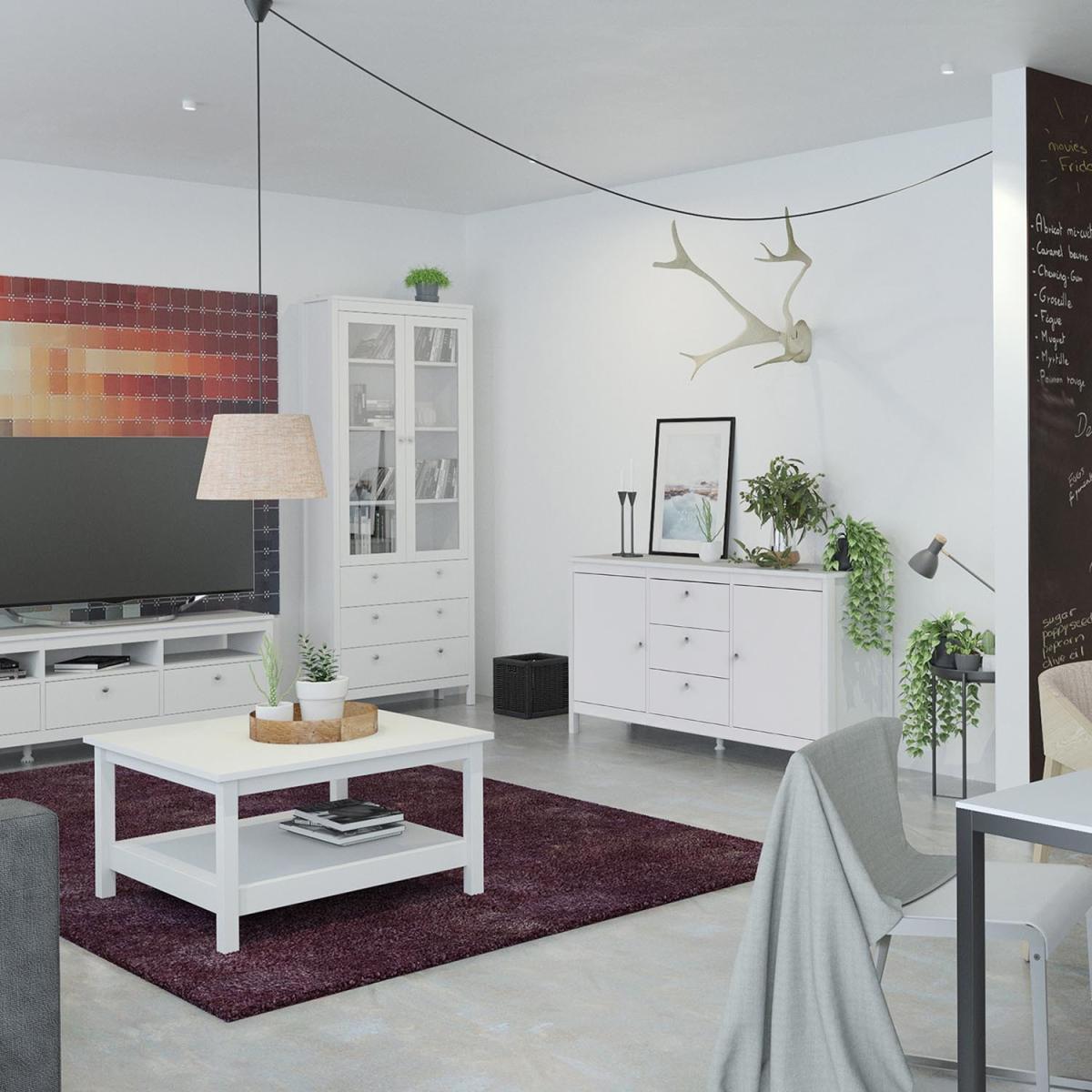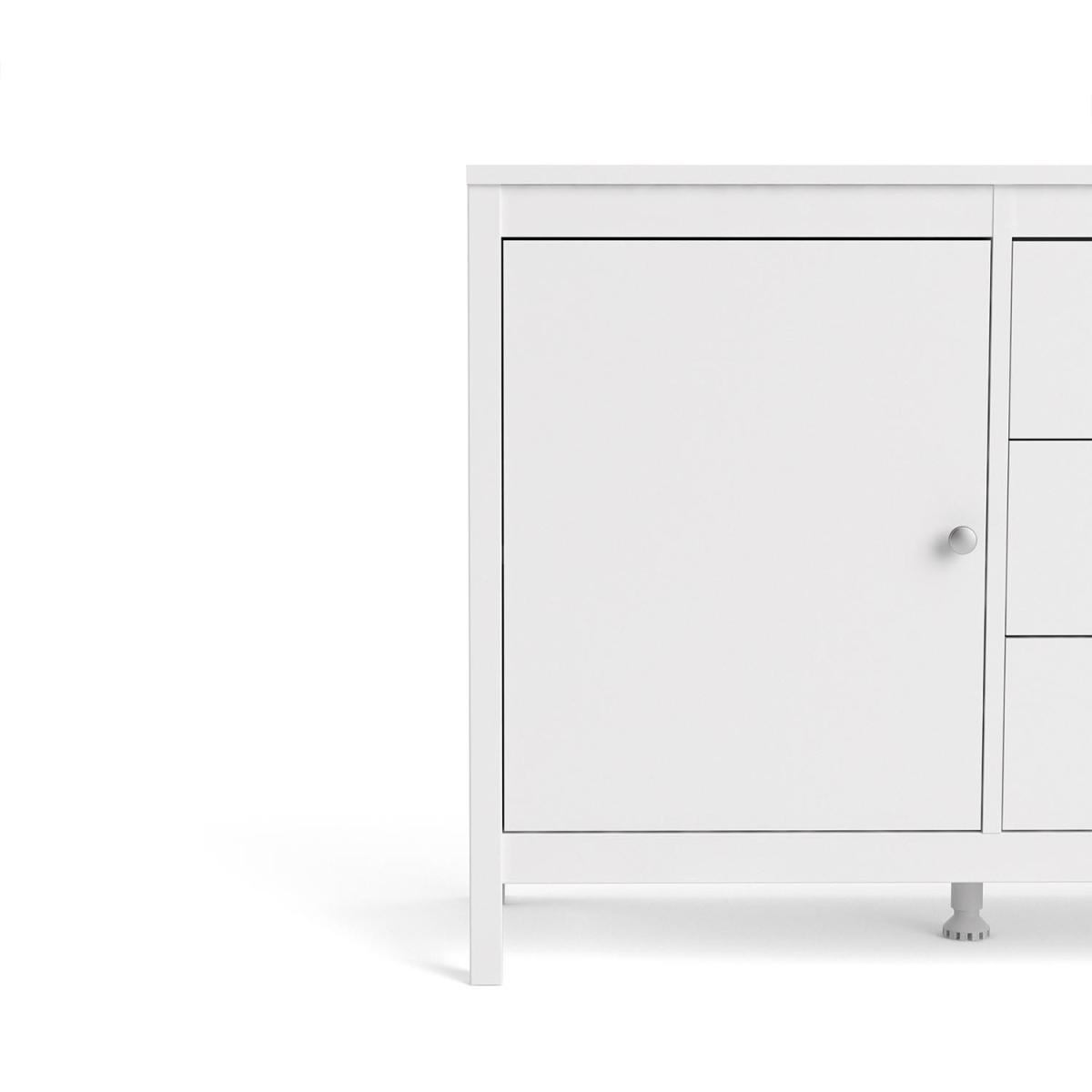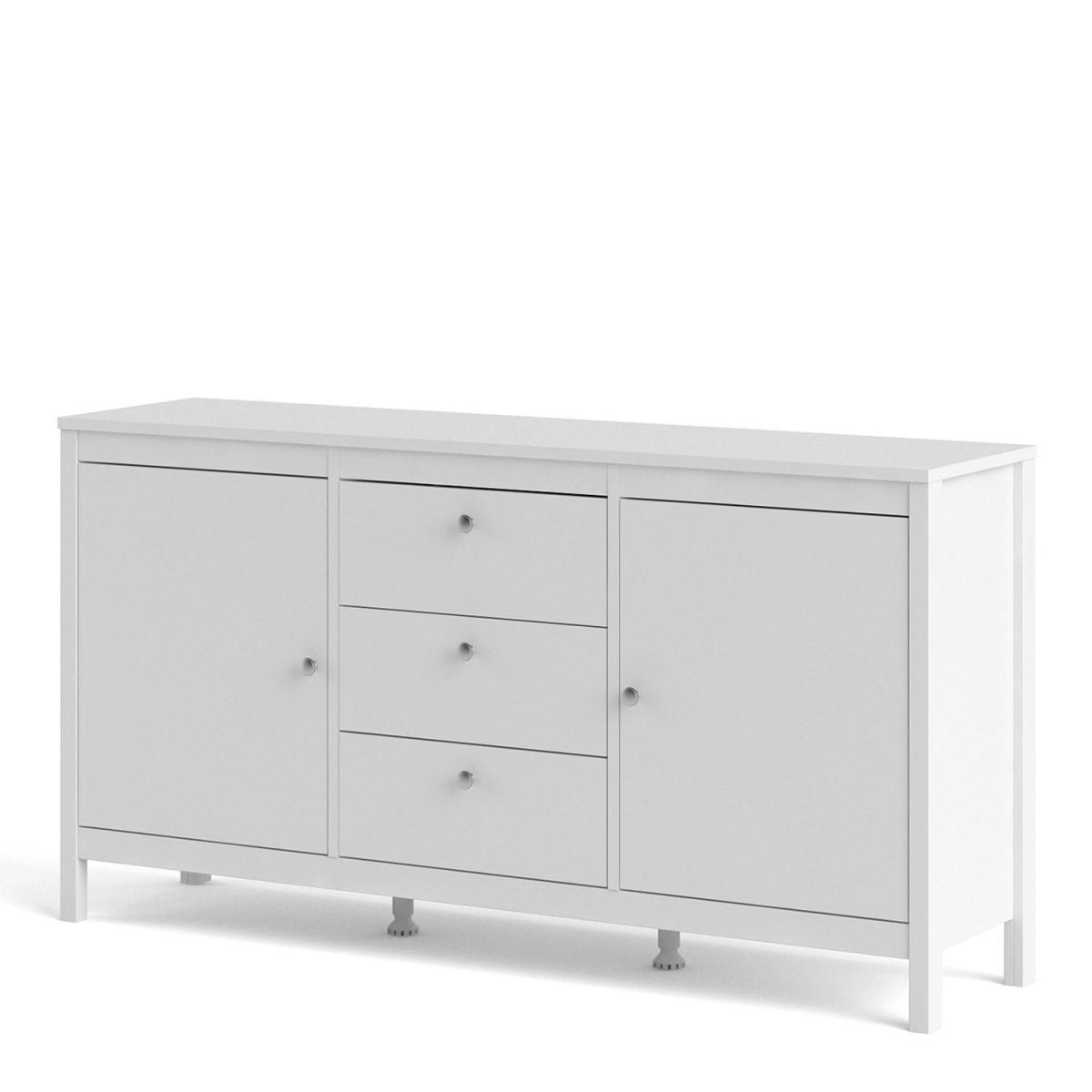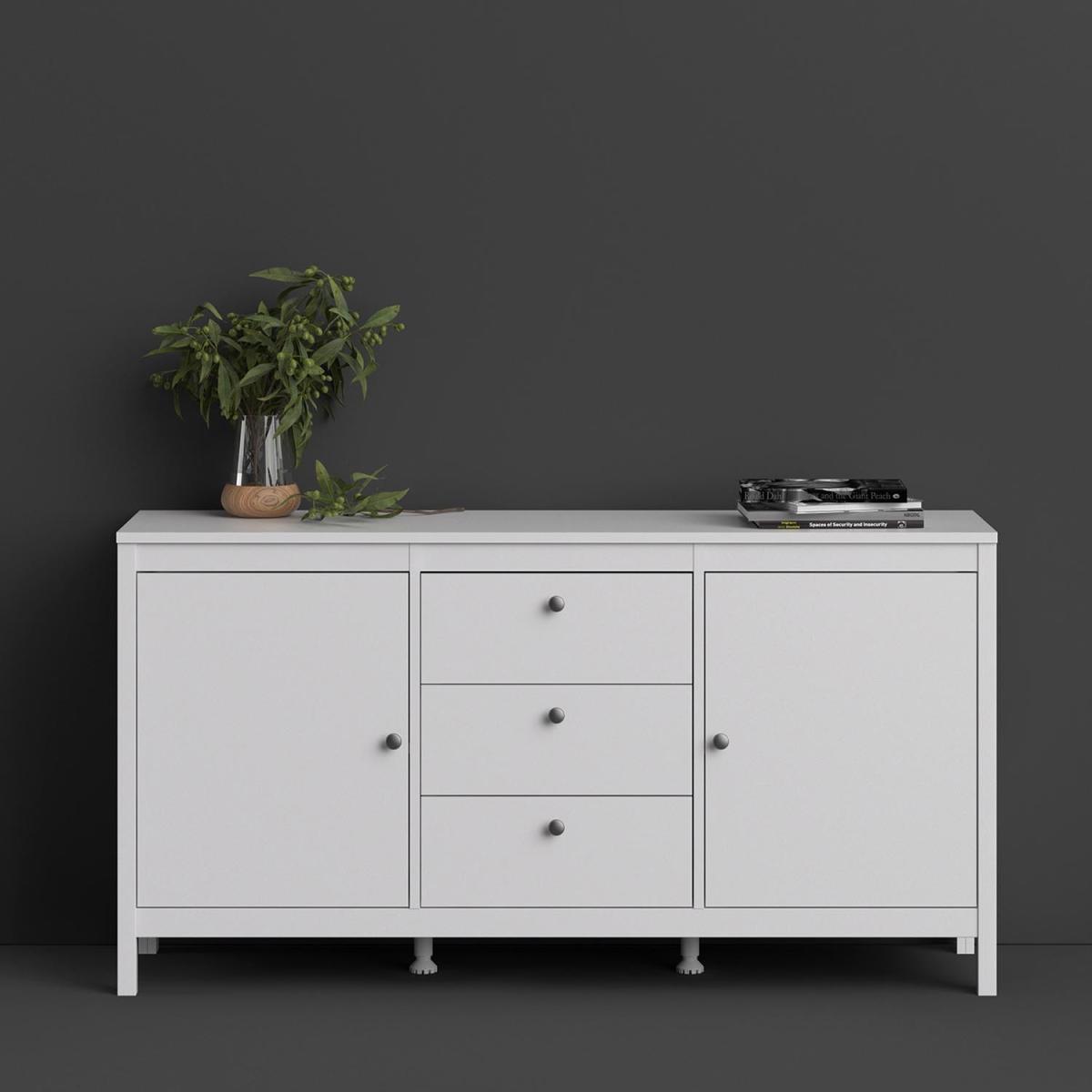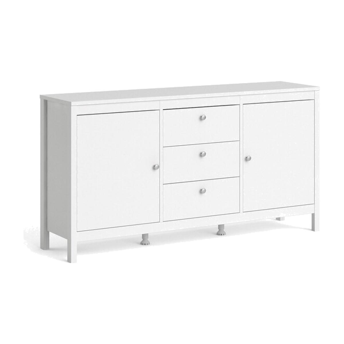 The Madrid Sideboard is a contemporary large sideboard including plenty of storage in an elegant design, complete with a simple metal handle. With lots of storage space behind the doors and in the drawers, this stunning, minimalist piece can be coordinated with a variety of existing home decor styles. Ideal for the living room, bedroom, dining room, or hallway, this sideboard is sure to impress. Finished with a high-quality laminated board, it's resistant to damage, scratches, moisture, and high temperature.