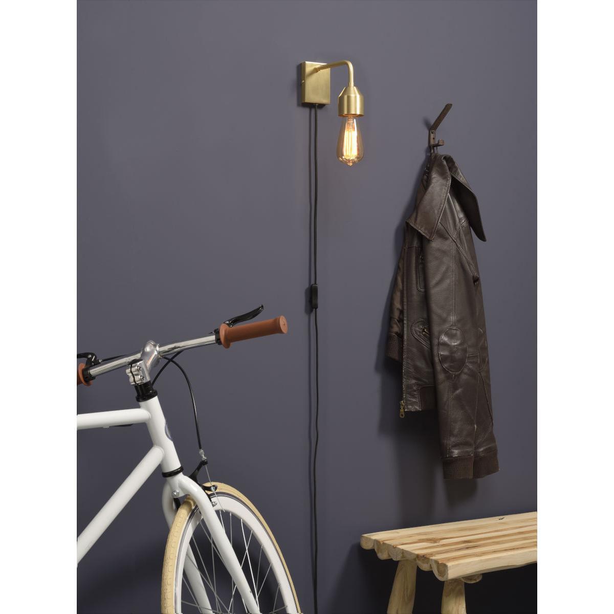 A minimalist design for this metal wall light with its stripped-back silhouette. Its perfectly functionalist style and formal humility give it an aesthetic neutrality that will stand the test of time. The bulb plays the starring role: You can use any decorative bulb of your choice (E27 cap) : A classic bulb with a filament, an oversized globe or even a coloured bulb. Get creative! This lamp comes with an elegant black fabric cable (with on/off switch).