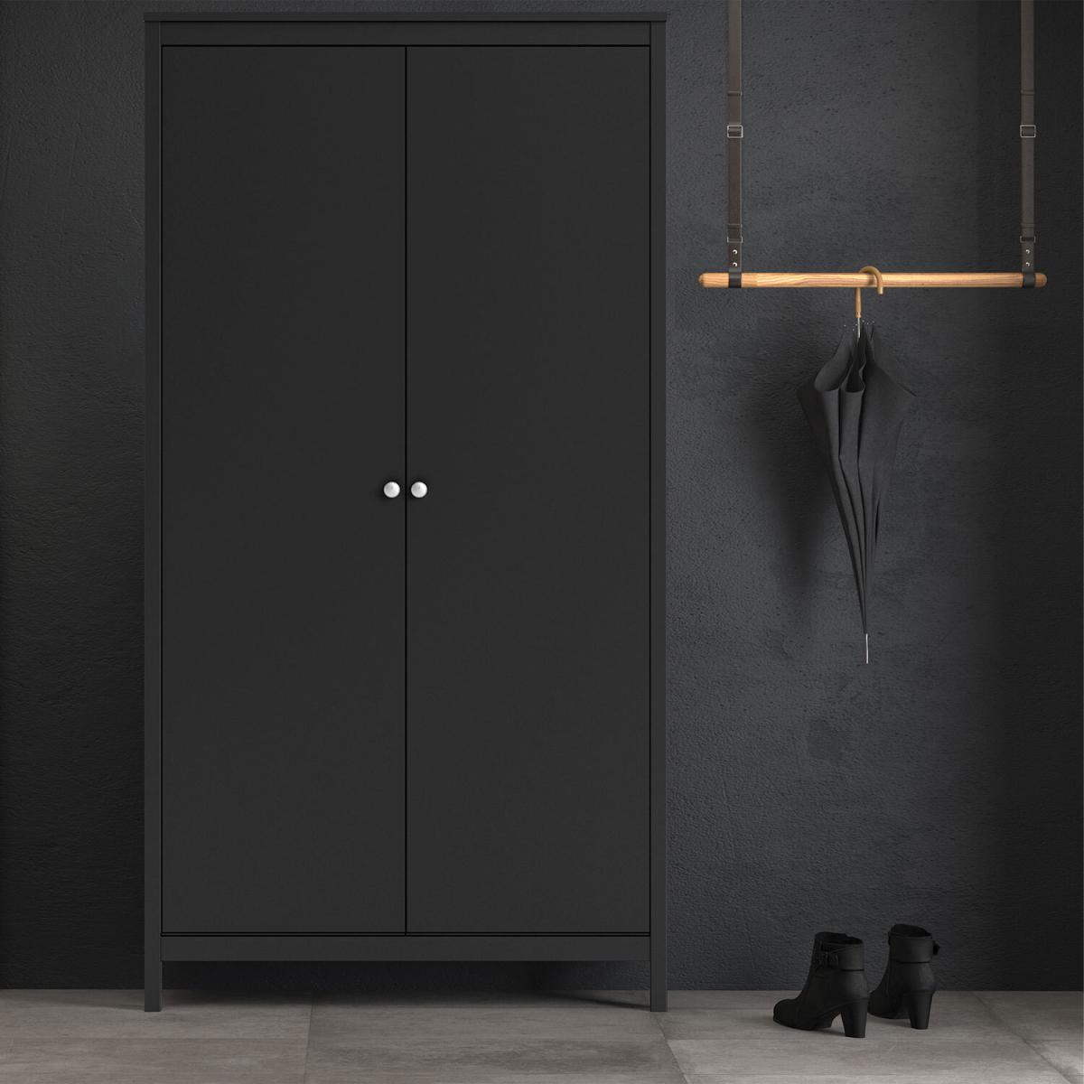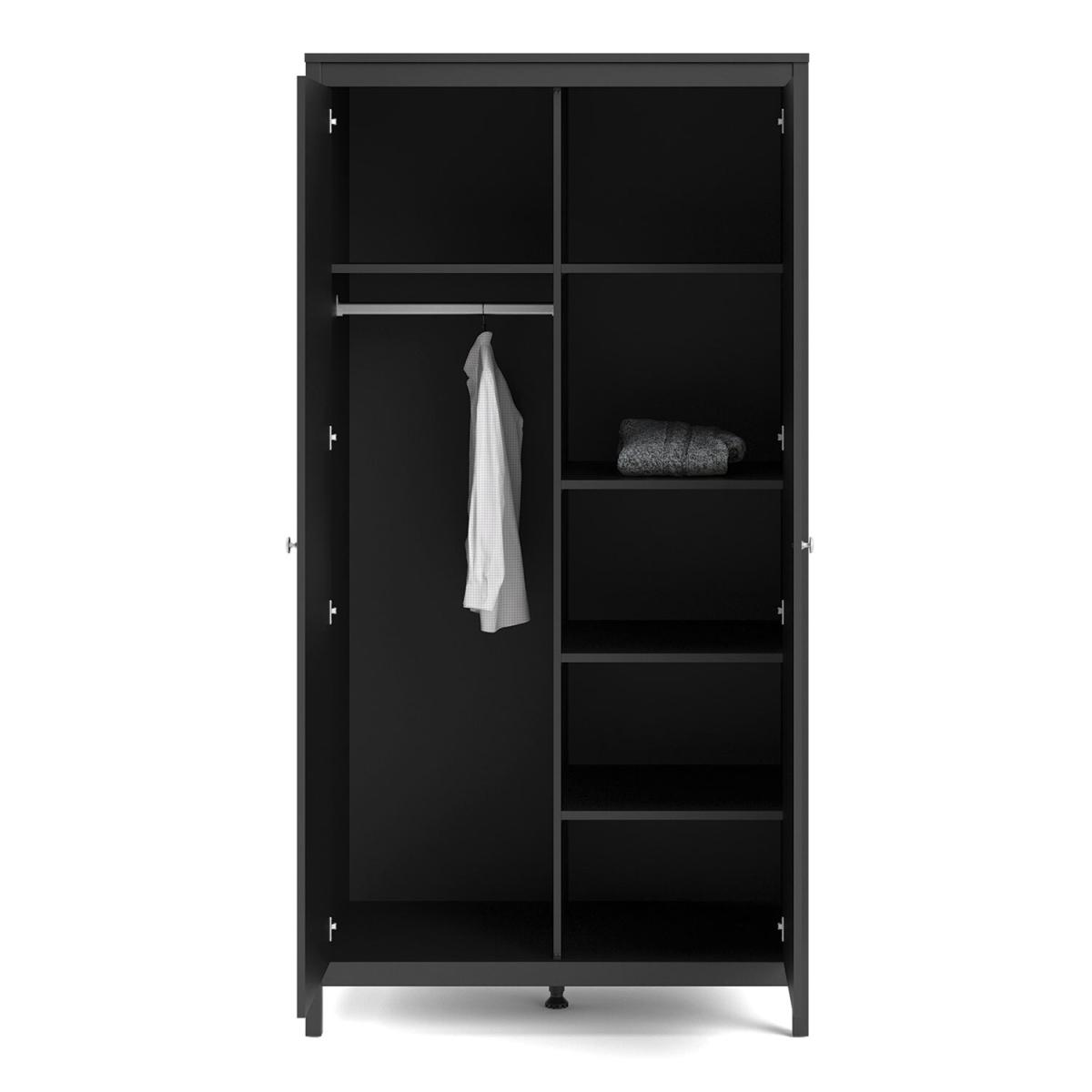 The Madrid Wardrobe is a stylish, contemporary wardrobe in an elegant design, complete with simple metal handles for a truly modern feel. The wardrobe includes a hang-rail as well as internal shelves for accessories, folded clothes, shoes, and more! An easy and impressive way to keep your space organised, it's sure to look beautiful in any bedroom regardless of decor thanks to its minimalist look. Finished with a high-quality laminated board, it's resistant to damage, scratches, moisture, and high temperatures for your convenience.