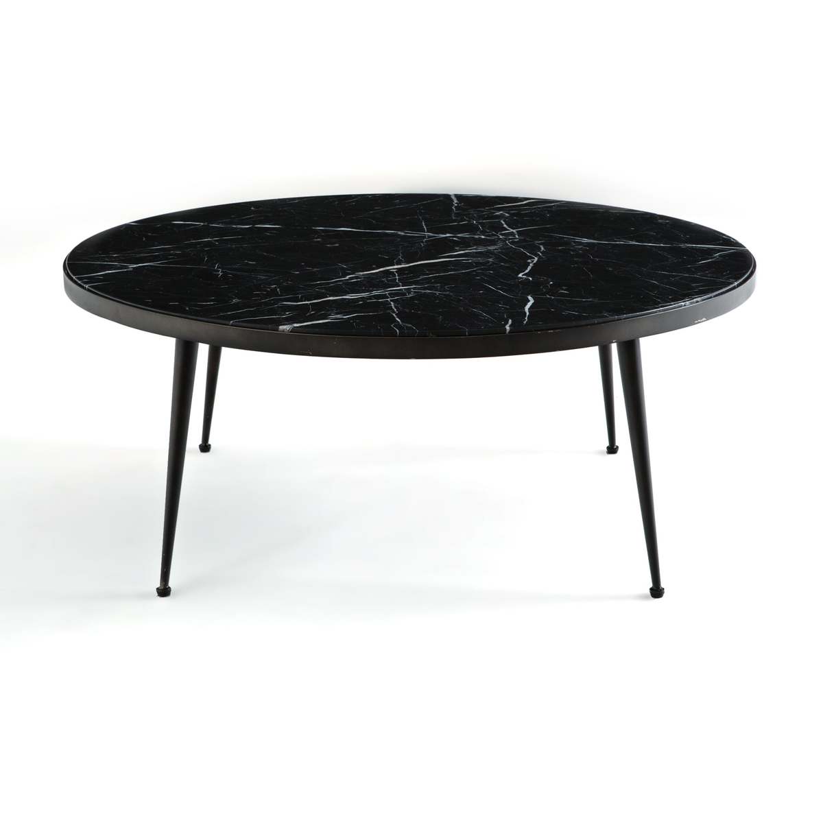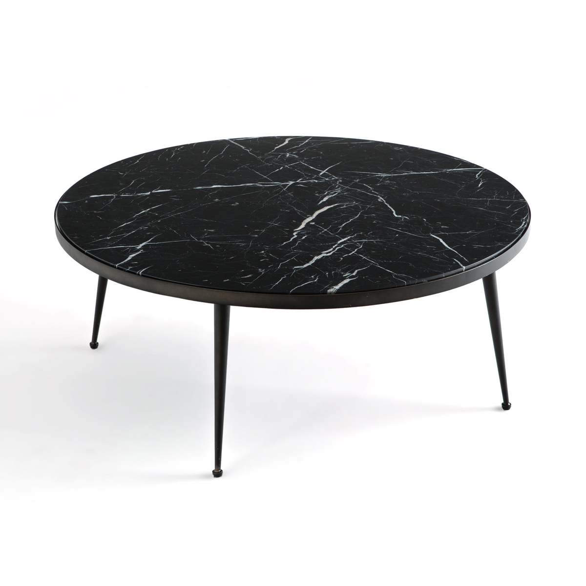 Marble meets metal with outstanding results in our Madrigal coffee table. Each piece a one-off due to the natural veined effect of the marble, the top is held aloft by a slender yet strong matte black metal frame. We love the contrast of the sleek, lightweight legs with the solid surface of the marble top.