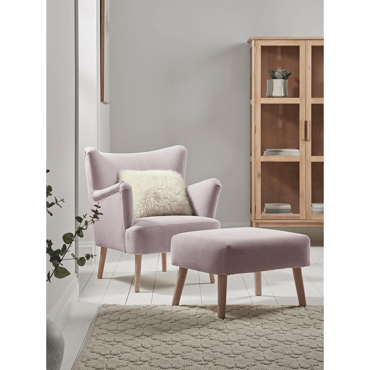 Inspired by a homely, traditional Scandinavian aesthetic, our stunning blush Mads footstool completes our. Mads armchair. Perfectly with its pairing soft blush shade and elegantly simple form. Four tapered beech wood legs complete our footstool, the perfect spot for rest your feet in style.