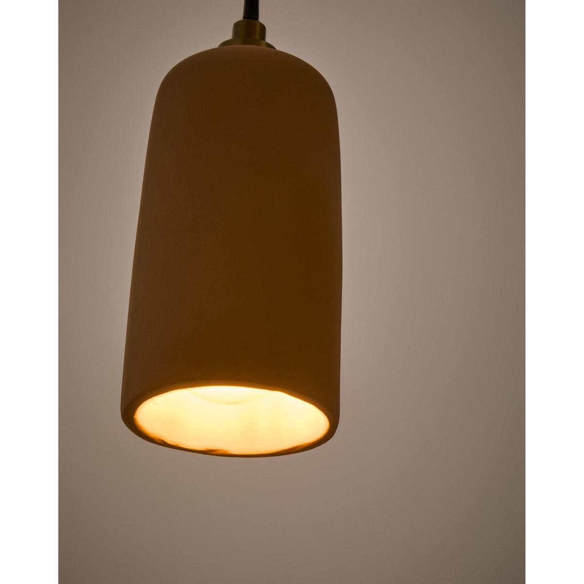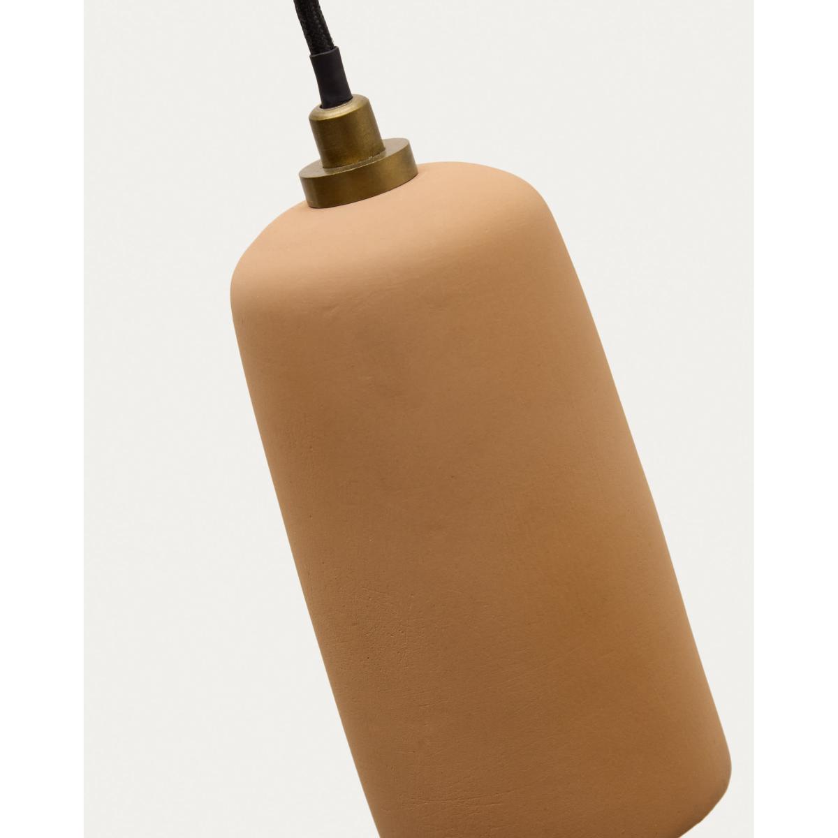 The Madsen terracotta ceiling lamp is a unique piece that adds a touch of authenticity and rustic charm to any space. Its minimalist design and the purity of its cylindrical shape make it a versatile option, ideal for those looking for lighting that combines simplicity and character. The terracotta adds natural warmth and an organic texture, which integrates perfectly with both modern and rustic spaces. Each Madsen lamp is unique in shape and finish thanks to the terracotta, ensuring that each piece has its own identity and personality. This makes it a perfect choice for those who value uniqueness and want to incorporate authentic elements into their spaces. This lamp is compatible with E27 bulbs up to 40W (not included). Its compact Ø8cm design is ideal for combining in a group or using as an individual element on dining tables, kitchen counters or special corners that need a touch of light and style. The Madsen lamp can be easily integrated into decorative compositions to create a harmonious and elegant ambience.
