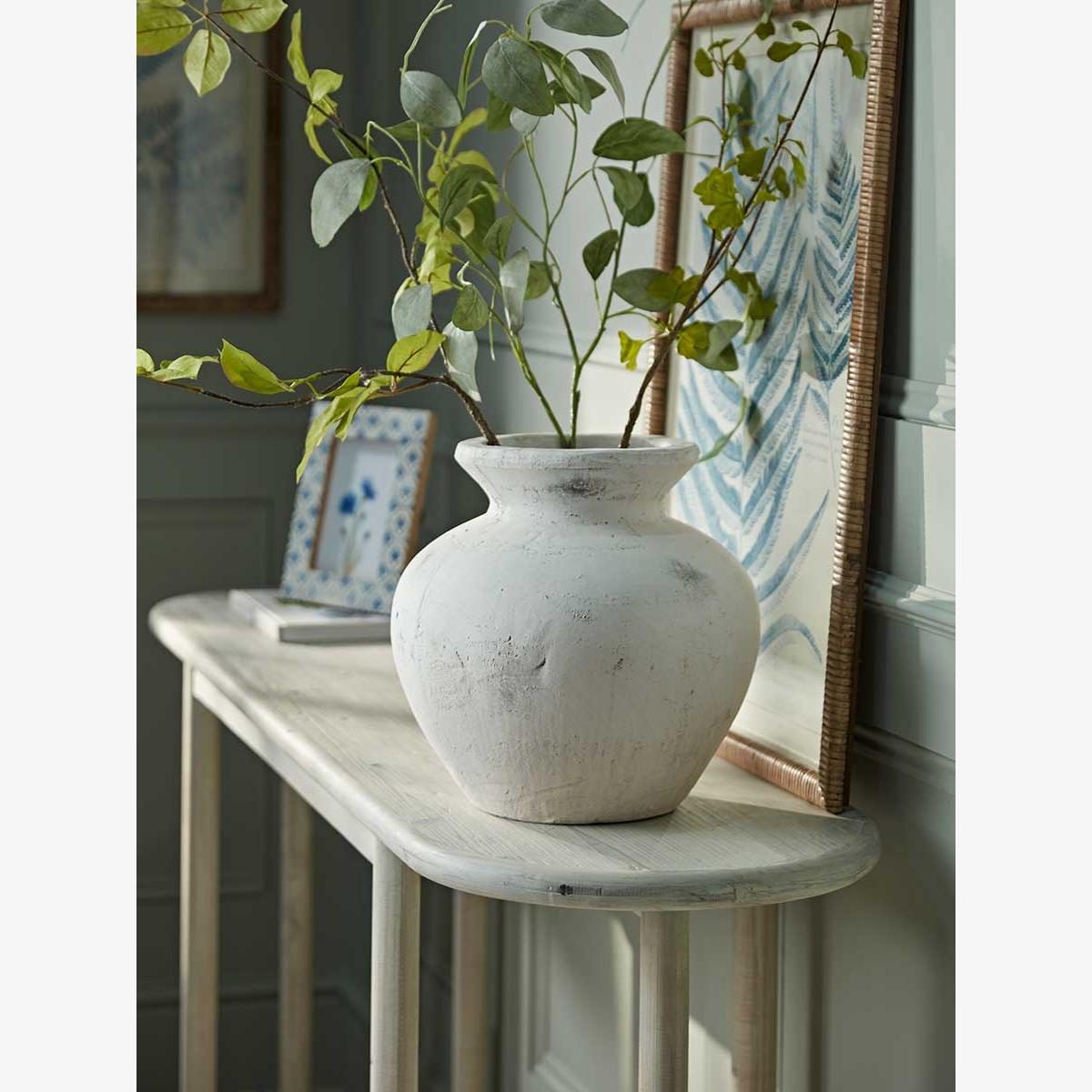 I love this vase for its versatile, timeless look that works beautifully in both modern and traditional interiors. Its aged stone effect adds texture without overwhelming a space, making it a great focal point on sideboards or mantels. I’d suggest pairing it with simple greenery or dried botanicals to keep the style understated yet impactful. It’s particularly effective in neutral or monochrome schemes, where the subtle rough texture can add warmth and interest. For practical styling, consider varying the height of your stems - a few tall, leafy branches will complement its shape superbly without looking overcrowded.