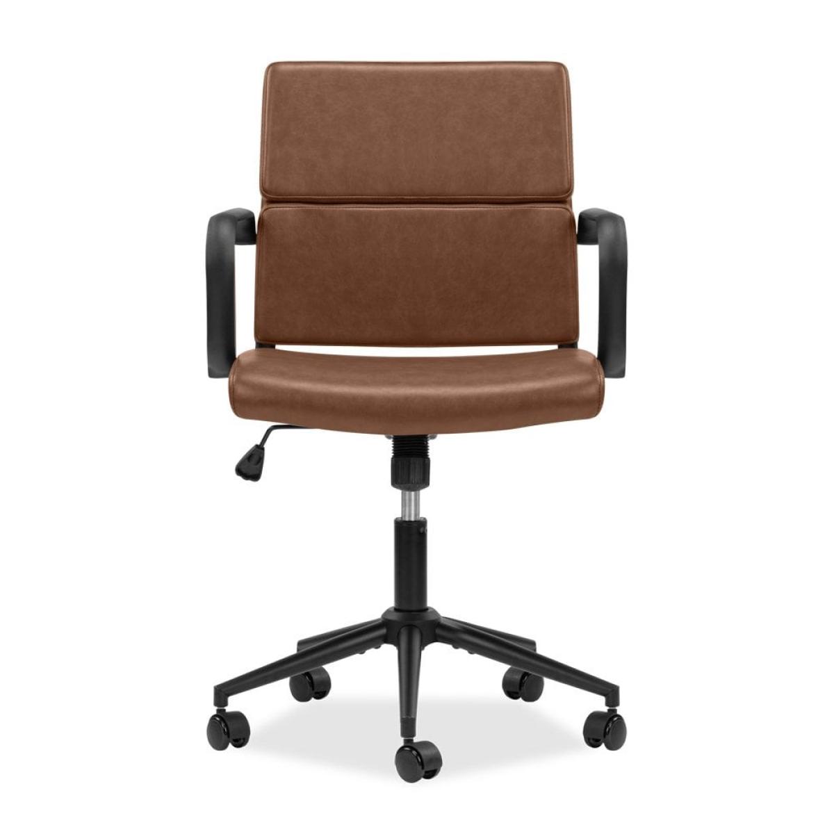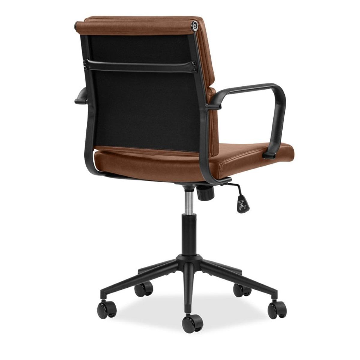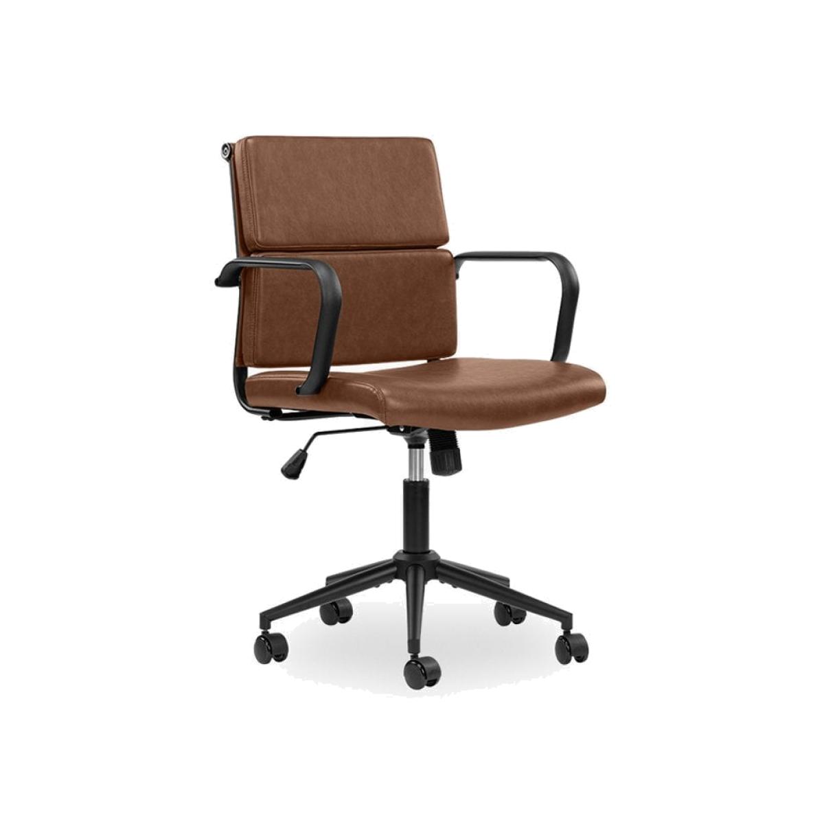 One for those looking for modern home office design, the Mae Tan Office Chair has that classic silhouette for style meets productivity. Upholstered in vintage tan faux leather and padded for comfort, the Mae features a low back, armrests, swivel function, and height adjustment, all gliding upon five wheels.