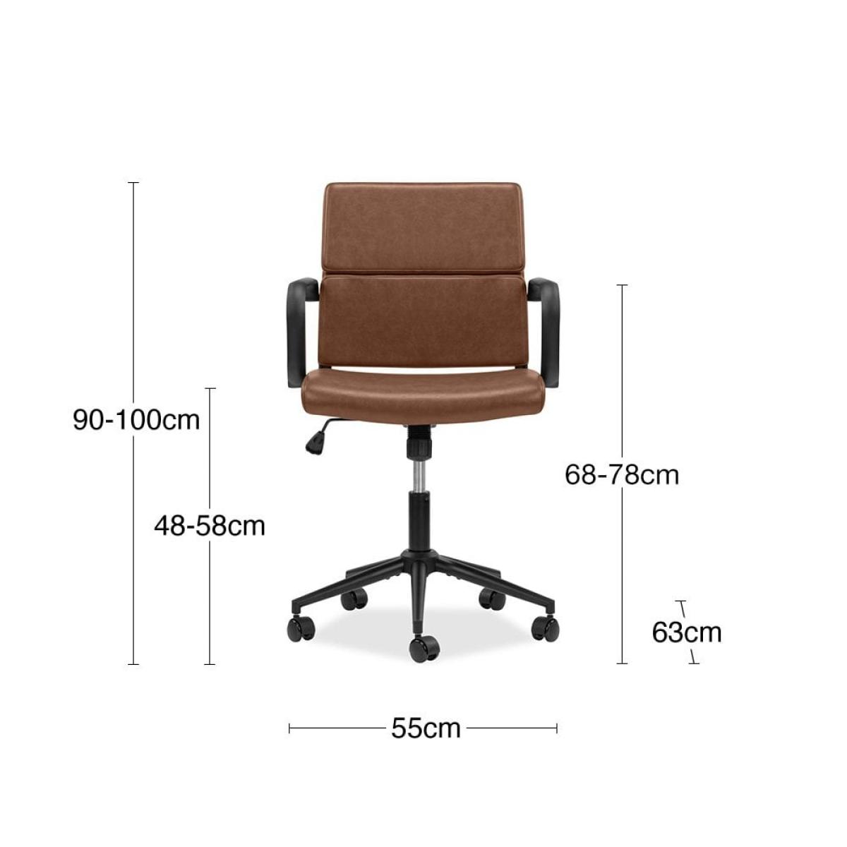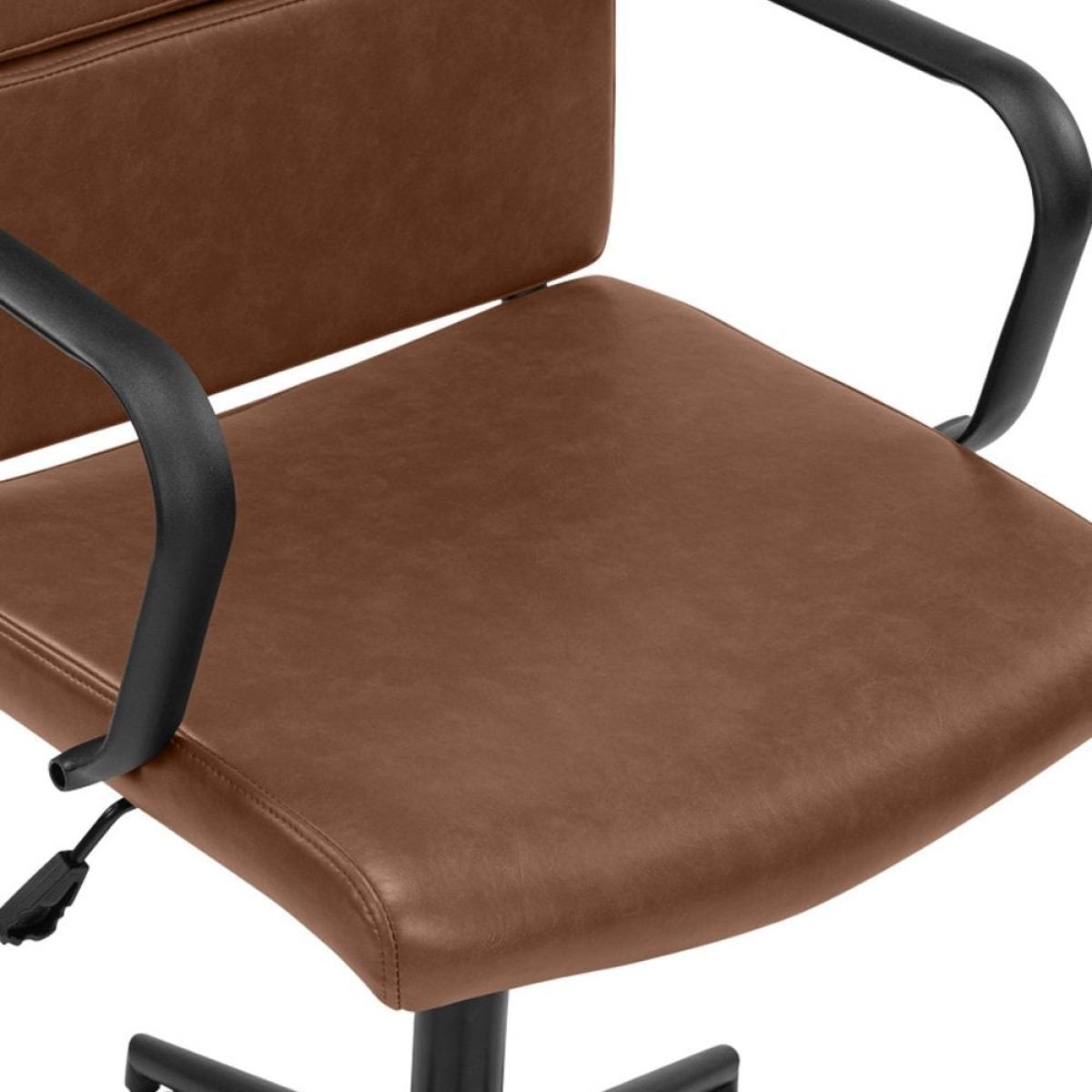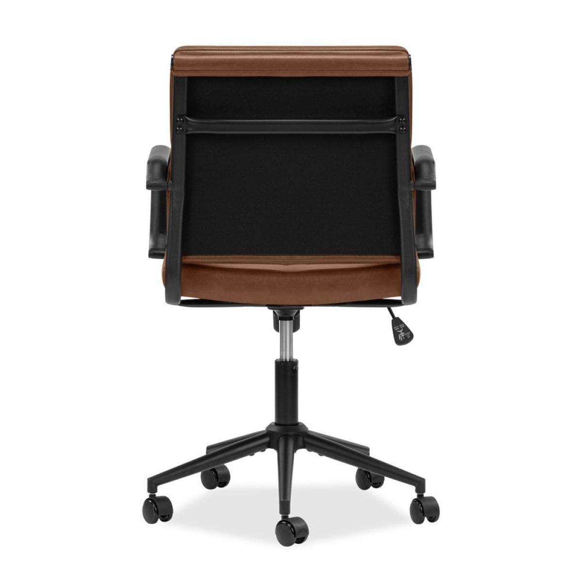 One for those looking for modern home office design, the Mae Tan Office Chair has that classic silhouette for style meets productivity. Upholstered in vintage tan faux leather and padded for comfort, the Mae features a low back, armrests, swivel function, and height adjustment, all gliding upon five wheels.