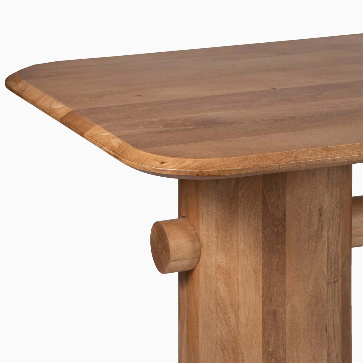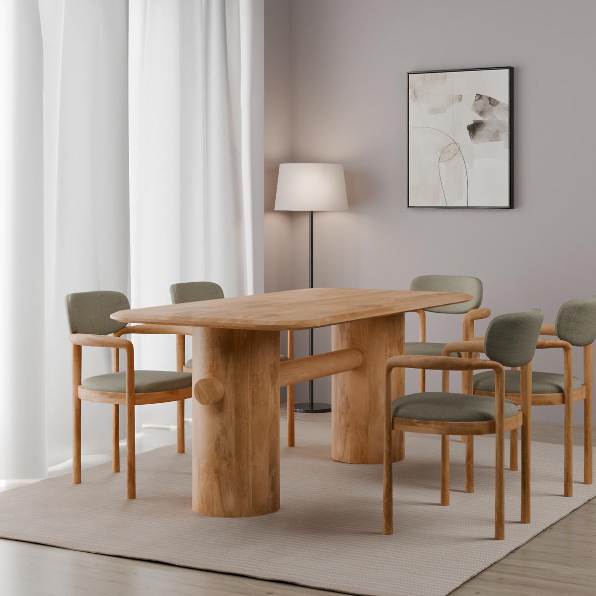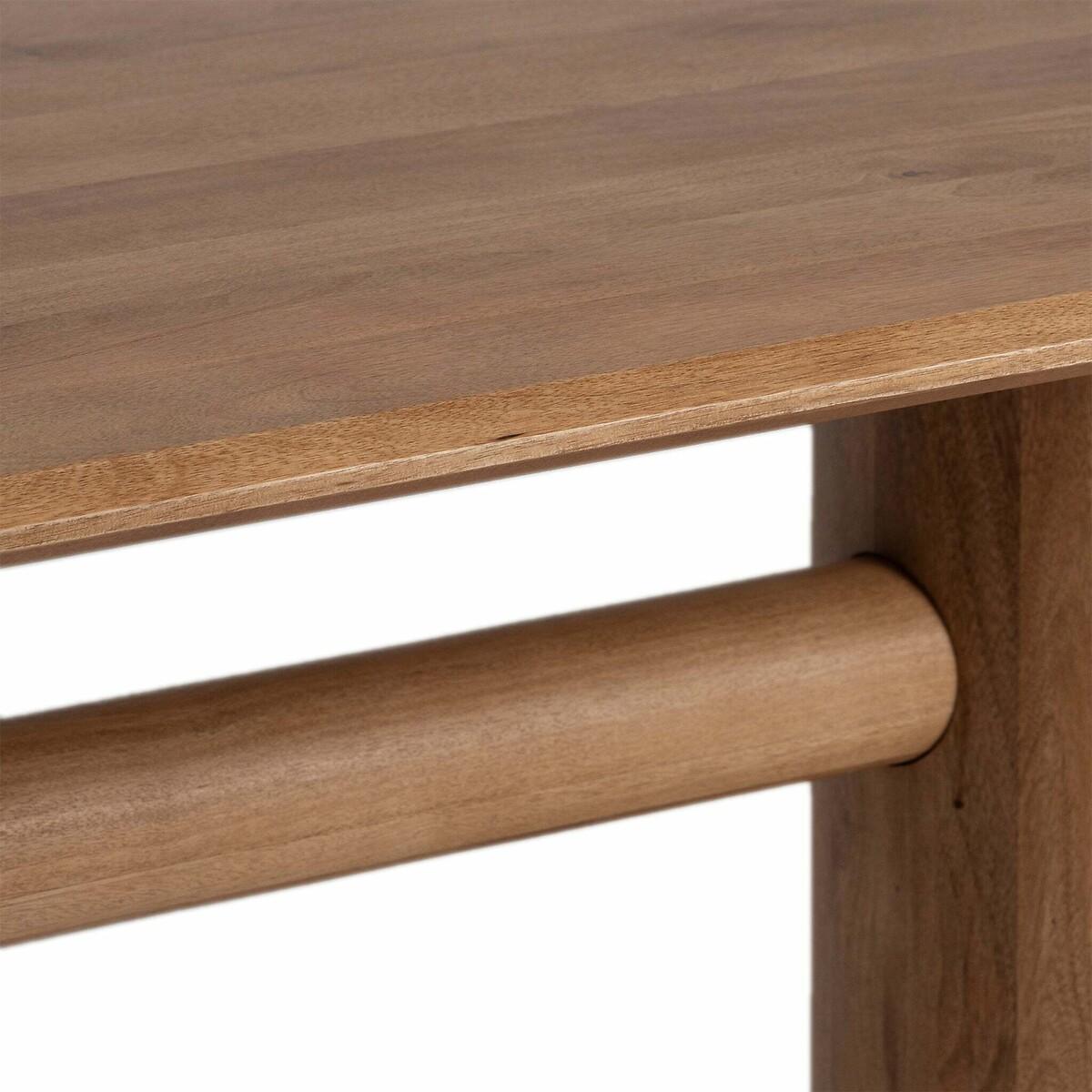 The Maela Dining Table, crafted from premium-quality mango wood with a natural finish, highlights rugged beauty and unique character. Its rectangular top pairs with striking cylindrical legs, effortlessly blending contemporary, eclectic, and bohemian styles. Comfortably seating six, Maela is the perfect centerpiece for vibrant, relaxed dining spaces. Product details• Seats 6• Mango Wood• Rectangular Tabletop• Cylindrical Legs• Delivered fully assembled. Product Composition - Mango Wood. Product Dimensions - 180 cm x 90 cm x 76 cm , Weight - 59.8 KG• Height of table:74cm• Length of table: 180cm. Package Dimensions - 188 cm x 98 cm x 20 cm, Weight 47.5 kg. This product will be dispatched by one of our trusted suppliers. You’ll be contacted by their selected courier about your delivery.