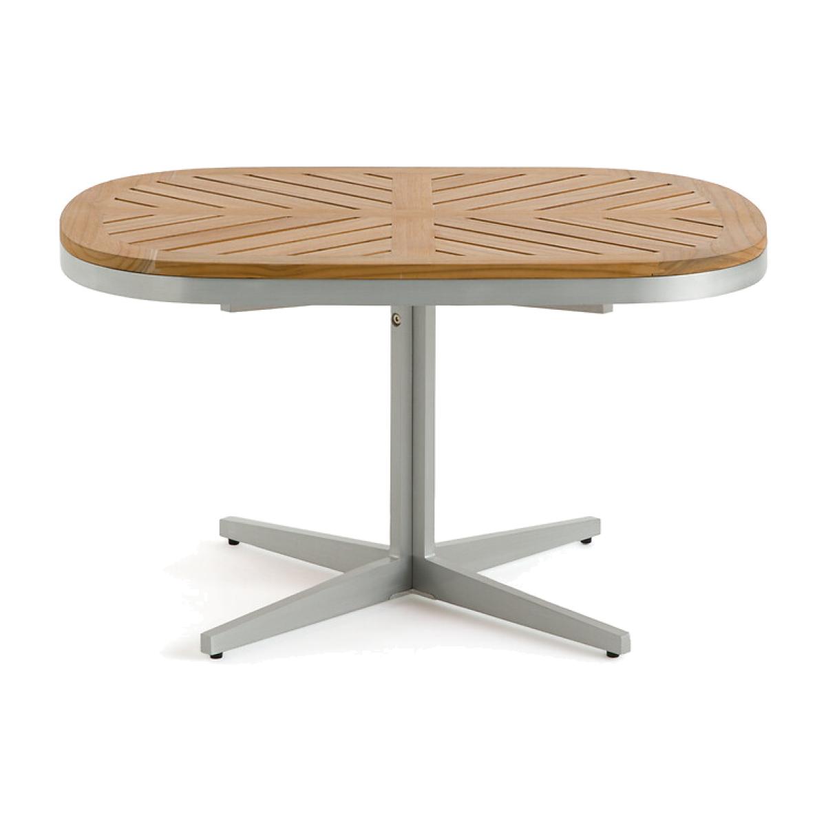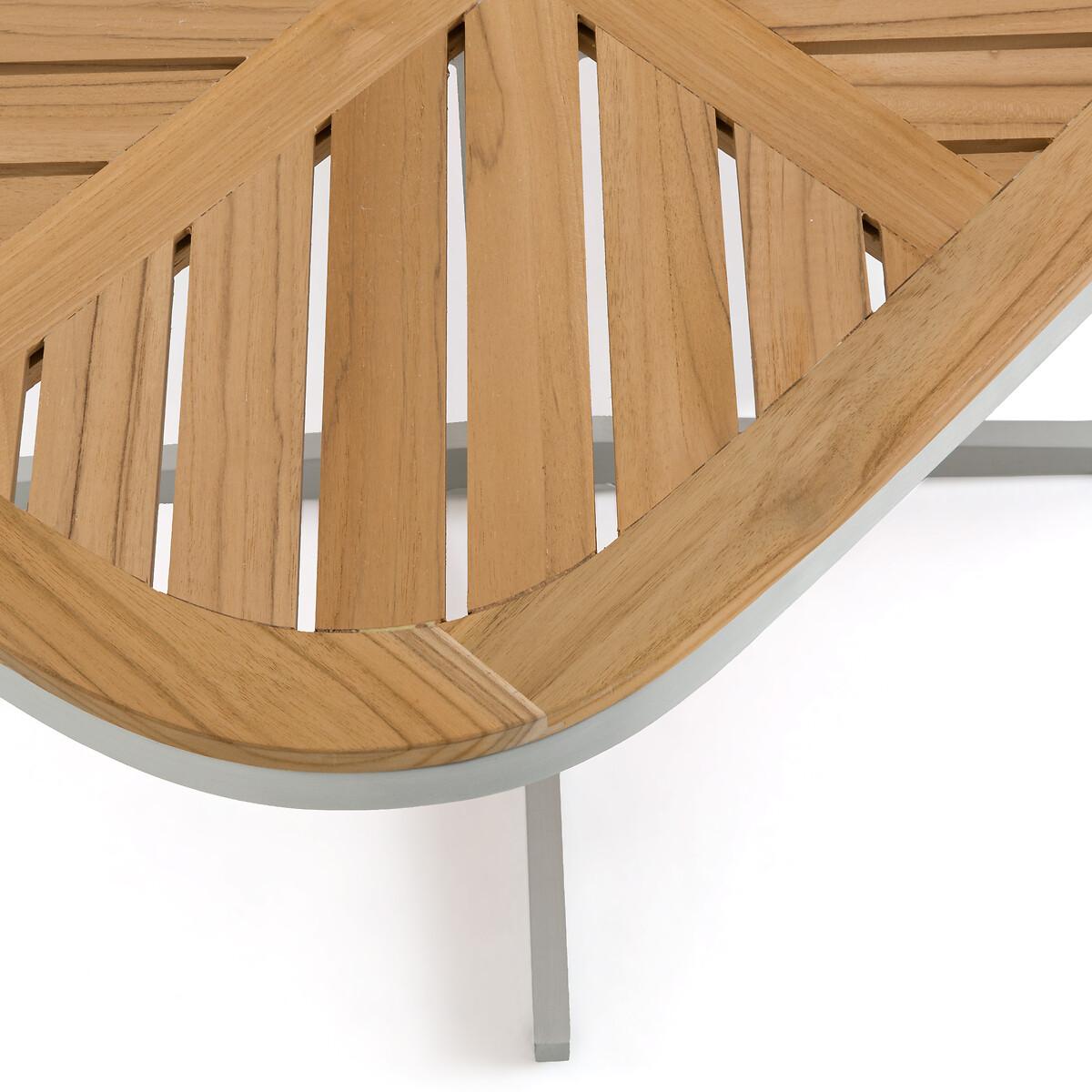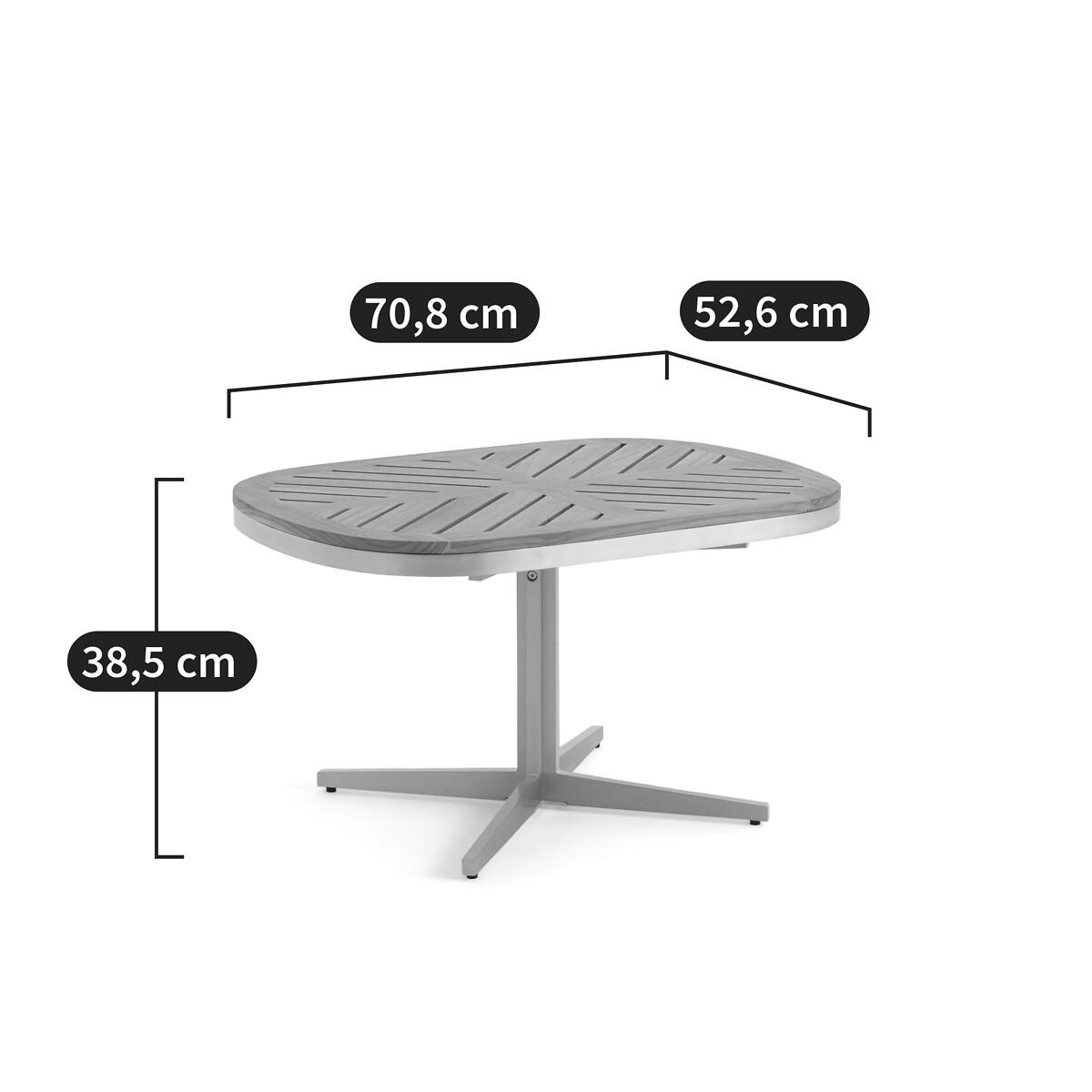 Contemporary and graphic, the Maestrale coffee table plays with the limits between interior and exterior. Its design as well as the choice of materials, teak and aluminium, evoke marine furniture, warm and compact. Inside, Maestrale will prolong the summer, giving a holiday feel to a living room or a winter garden. Made to last, an AMPM exclusive. Product Details • Top: Solid teak • Base and structure: aluminium with epoxy paint finish. Quality Info • Aluminum offers the advantage of not rusting. Easy to clean, it can be washed with soapy water. This material is ideal for outdoor furniture. This lightweight table is easy to carry and store. • Solid teak is ideal for outdoor use. It is impregnated with an oil which ensures durability and resistance to bad weather and attacks by insects and fungi.. Care Advice • Cleaning: use a damp soft cloth and a little soapy water. • Low temperatures are likely to affect the proper functioning and surface condition of your outdoor furniture. • We therefore advise you to store it in a dry, ventilated and closed room.. We strongly advise against the use of a tarpaulin because it will act as an oven and will damage the surface conditions; wood and metal products are particularly concerned. • Before any storage, remember to clean and dry the products well, in order to prevent the appearance of mould or unpleasant odours.. • In any case and regardless of the material, it is not recommended to leave the furniture outside without protection, particularly during bad weather and the winter phase.. Dimensions • Width: 70.8cm • Height: 38.5cm • Depth: 52.6cm • Weight 10.2kgDelivery:. This product is sold ready to assemble. Dimensions and weight of parcel • 1 parcel • L79 x D64 x H11.5cm, 12kg.