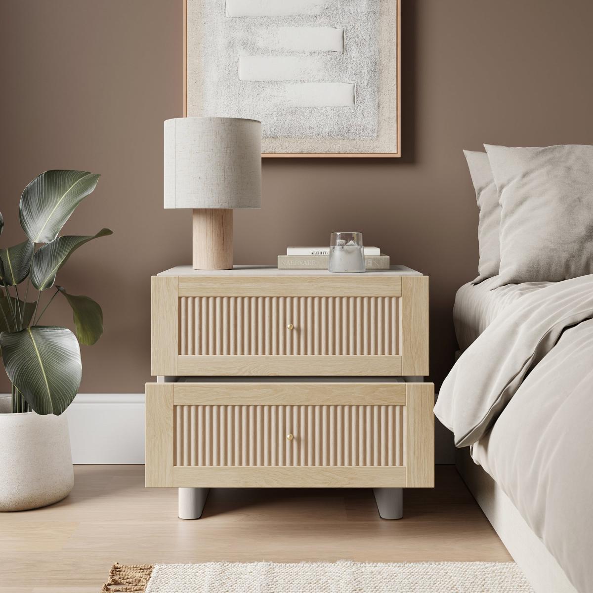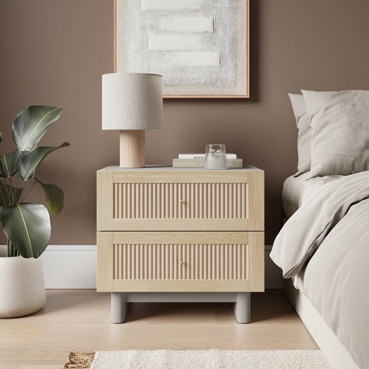Maeva 2 Drawer Wide Bedside Table, Light Oak Effect Light Oak