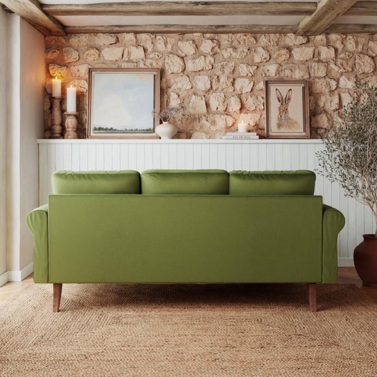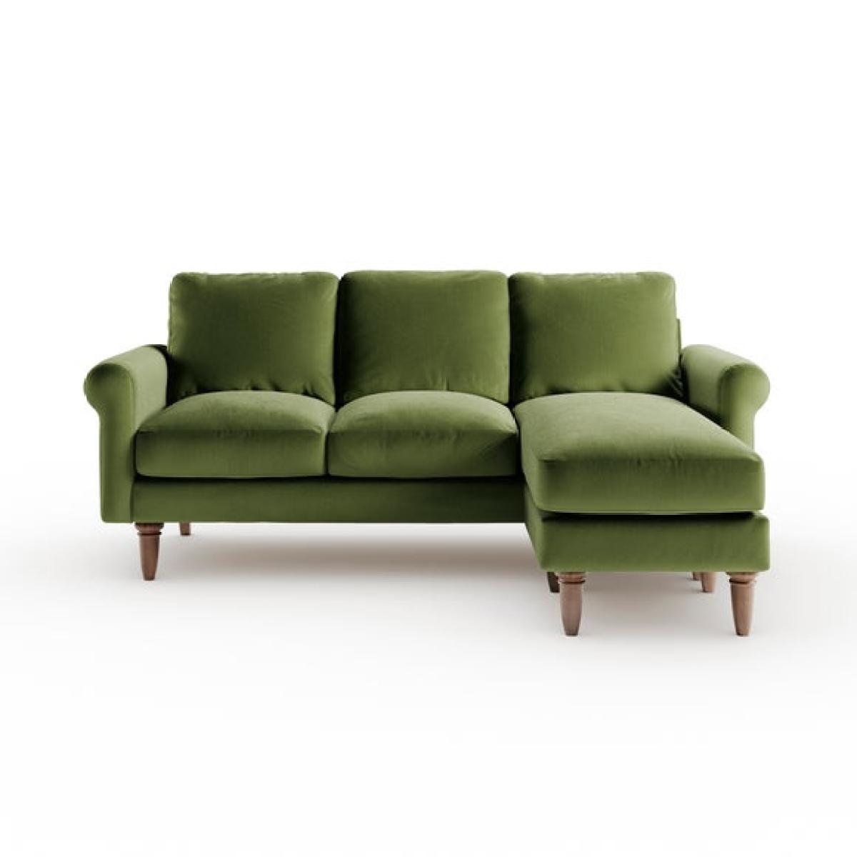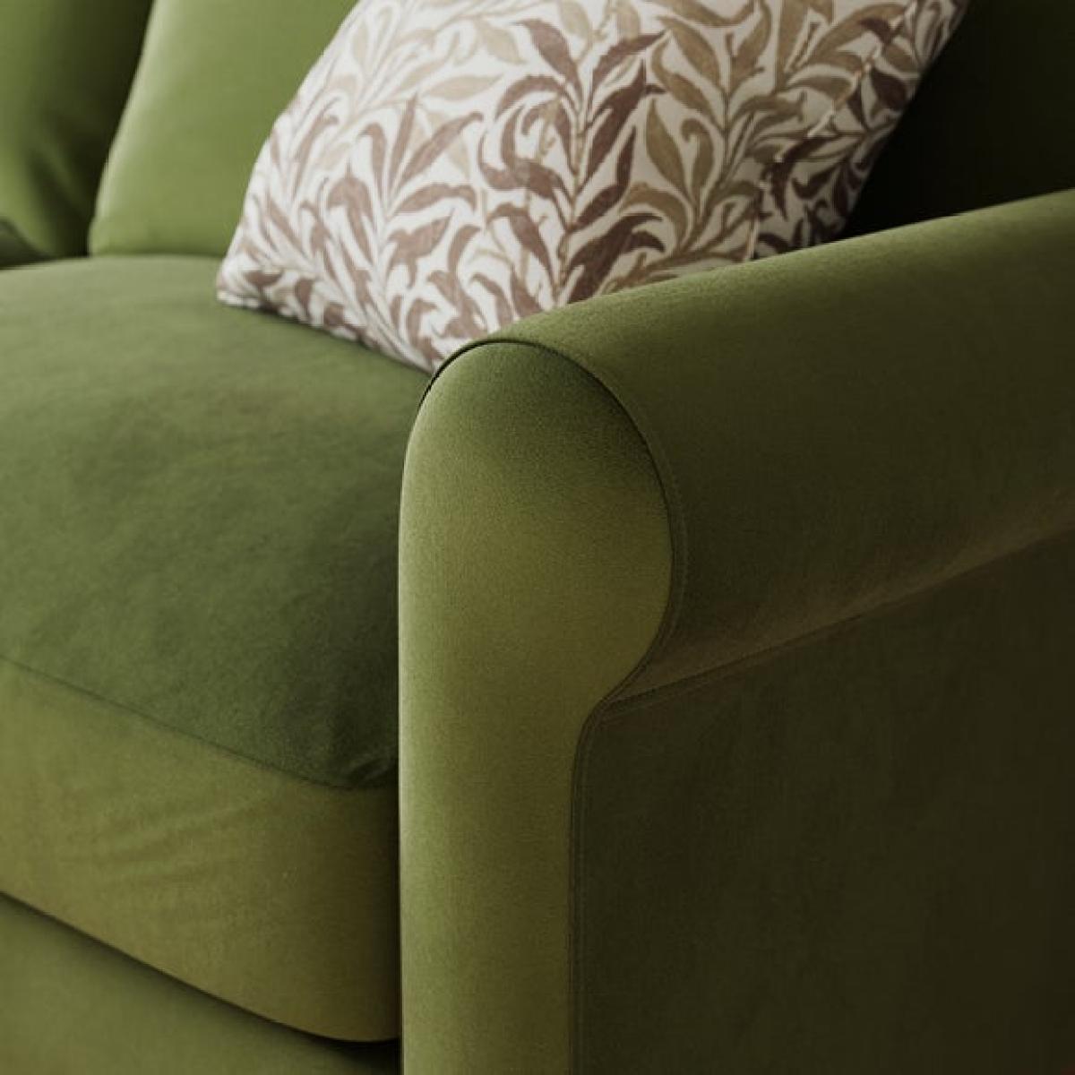 * Compact corner sofa * Comfortable chaise * Olive green velvet * Space saving solution Designed for smaller spaces, the Maeve Corner Chaise Sofa offers both comfort and style without compromising on practicality. Its timeless scroll arm design and soft-touch velvet upholstery create a cosy yet elegant look, while the rich olive green colour complements a range of interiors. The sturdy wooden frame provides durability, ensuring long-lasting support, while the removable cushions make maintenance effortless. With its compact shape and invitingly soft foam and fibre filled seat, it’s perfect for relaxing after a long day. A stylish and versatile addition to any living space.