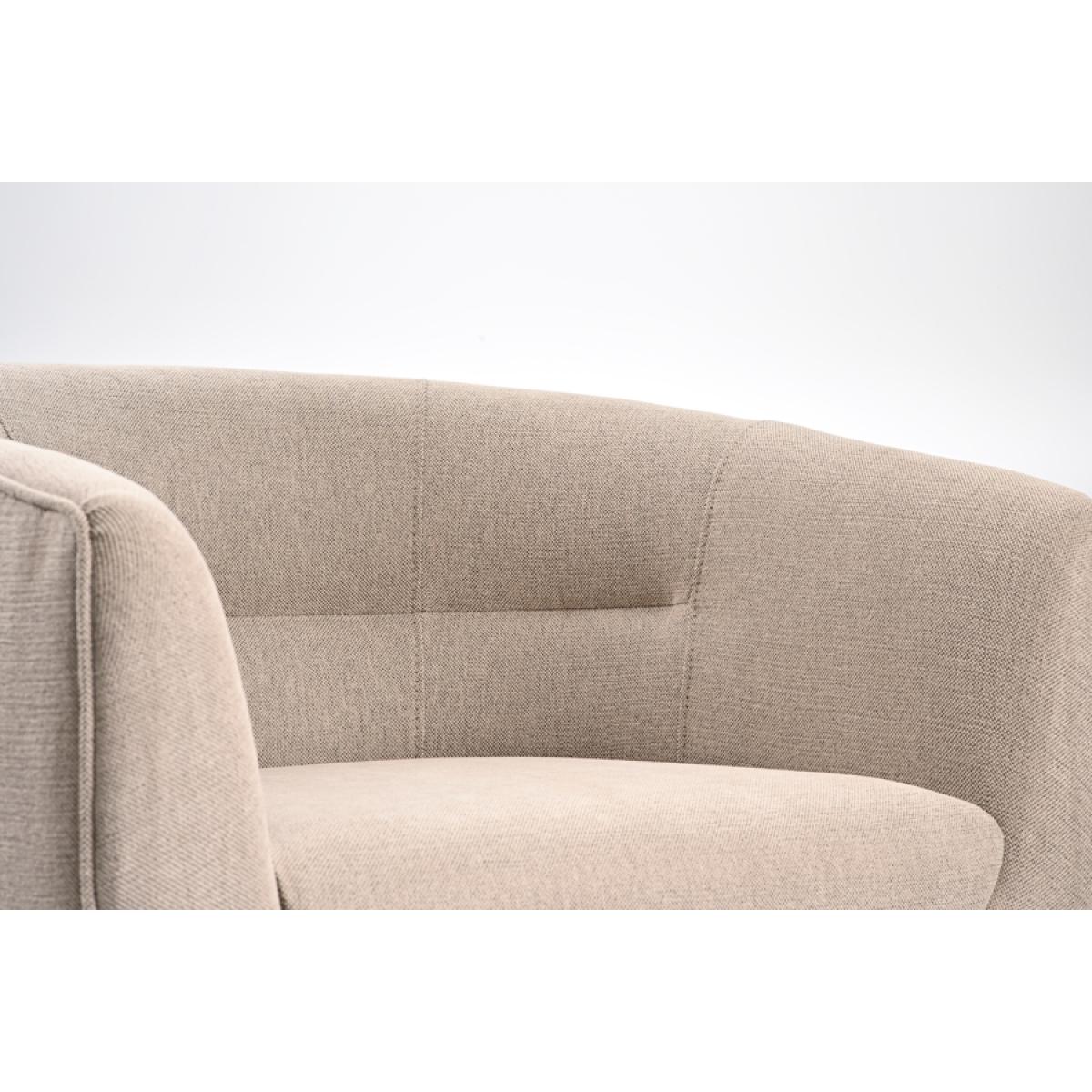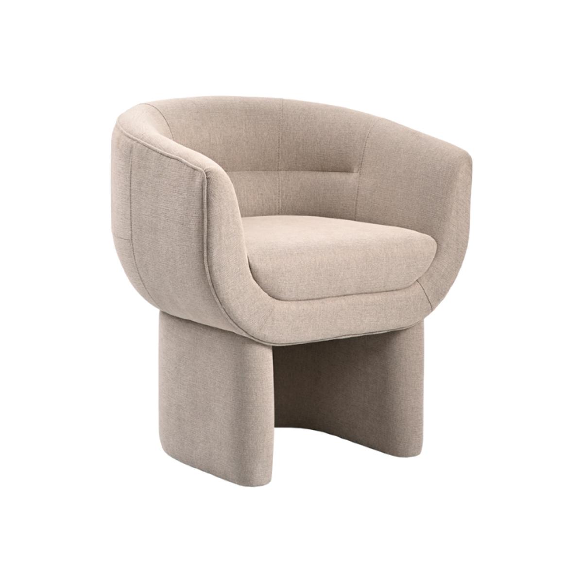 I’m a fan of the Maeve chair for its clean, rounded silhouette and soft taupe upholstery - it slips easily into Scandi, contemporary or transitional schemes. The low, curved back keeps sightlines open around a glass or wood-topped table, while the sculptural base adds subtle interest without overpowering a space. For styling, mix two at the table head with slimmer chairs on the sides to create a relaxed focal point, or use as an occasional chair in a snug reading nook. A small lumbar cushion in a contrasting colour (think moss green or muted mustard) adds comfort and personality, and a low-pile rug will anchor the look without competing with the chair’s form.