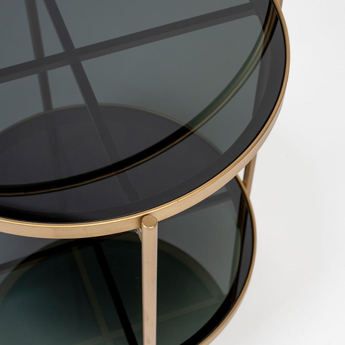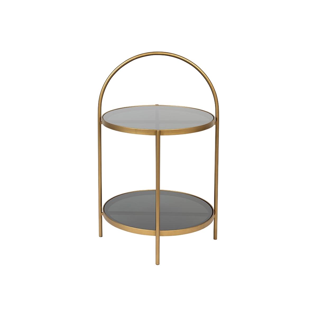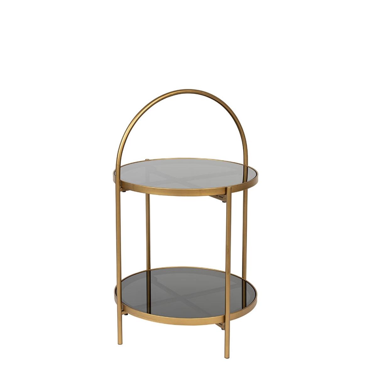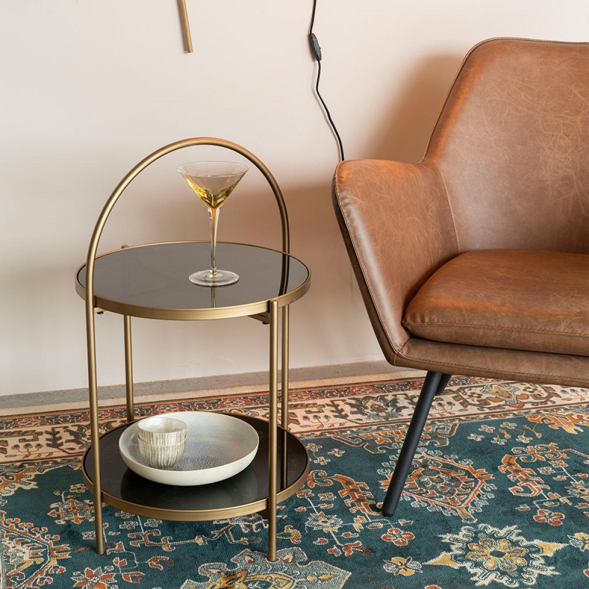 The Maeve Side Table was made for Art Deco aficionados. The elegant iron frame has been given a gold lustre finish, bringing a hint of glamour to your interiors. Set drinks and nibbles on the two tempered glass table tops - a builders brew just won't do. Position next to an accent chair as equally splendid and sip on cocktails instead - so sophisticated! Feeling satisfied? With the curved handle, move the Maeve Accent Table to one side and save on floor space and pay another visit the next time you're hankering for a Gin Rickey!.