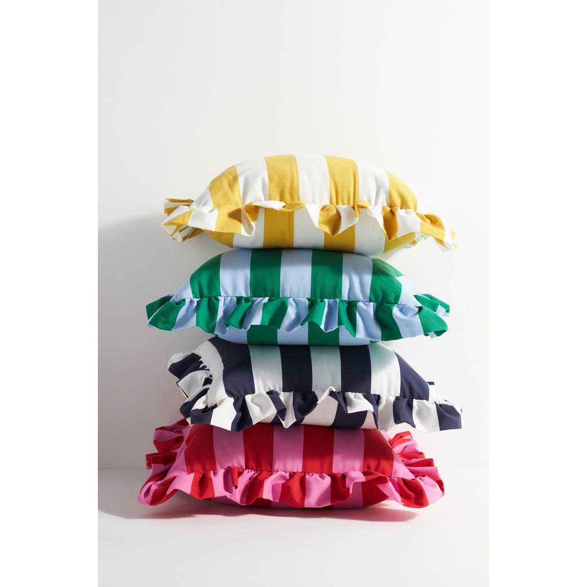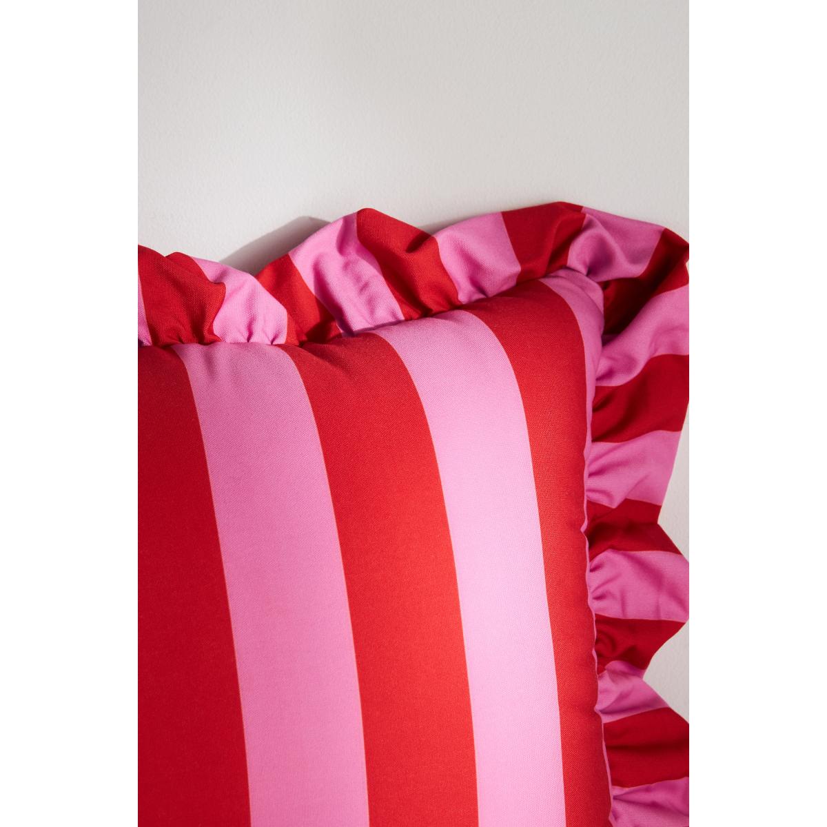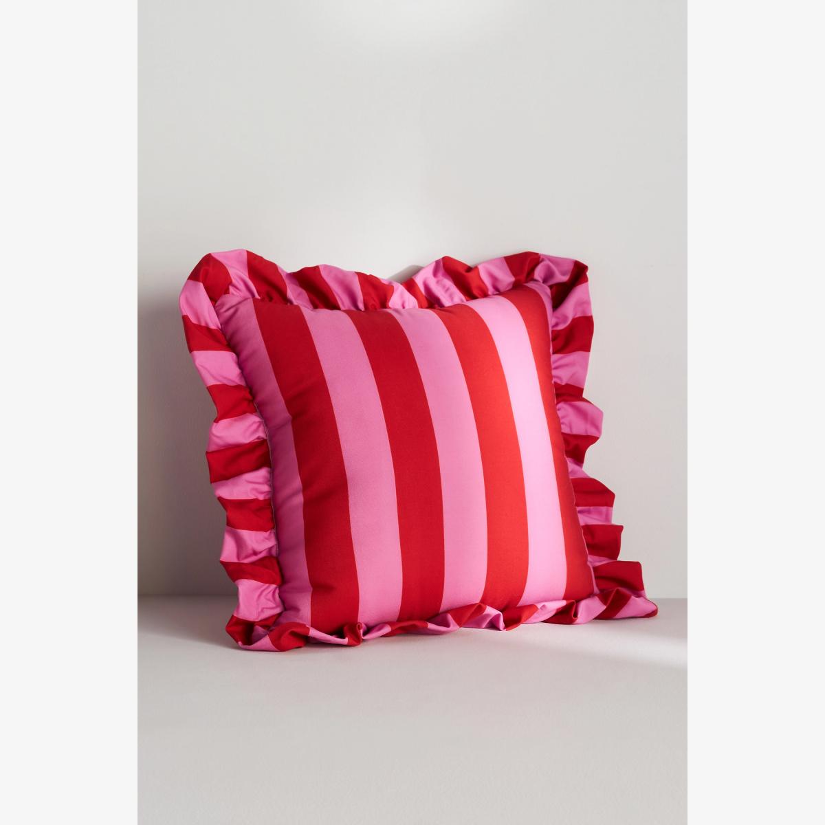 Add a touch of whimsy to any space - indoors or out - with this pillow's dreamy striped design and delightful ruffle trim, promising cosy comfort and stylish flair. Striped Ruffle Indoor/Outdoor Cushion by Maeve in Pink Size: 20 in sq at Anthropologie