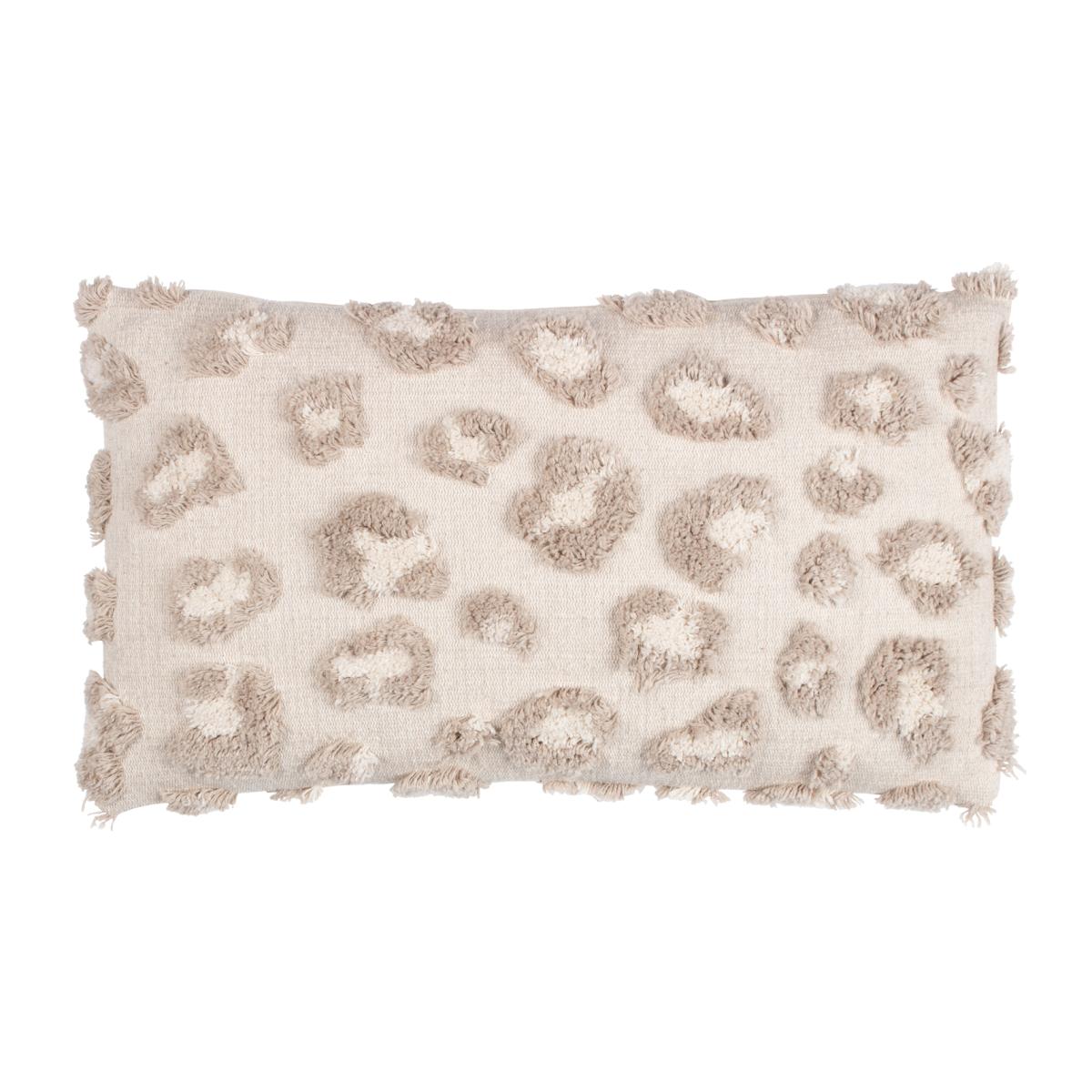 This uniquely designed cushion features prominent tufts of cotton in a tonal leopard print design, set on a woven base, complete with a durable matching reverse. Finished with a standard knife edge trim and zip closure. Great for adding an on-trend boho touch to your soft furnishings.