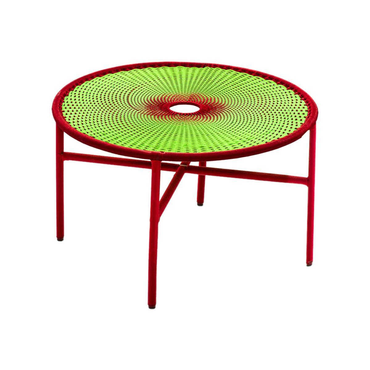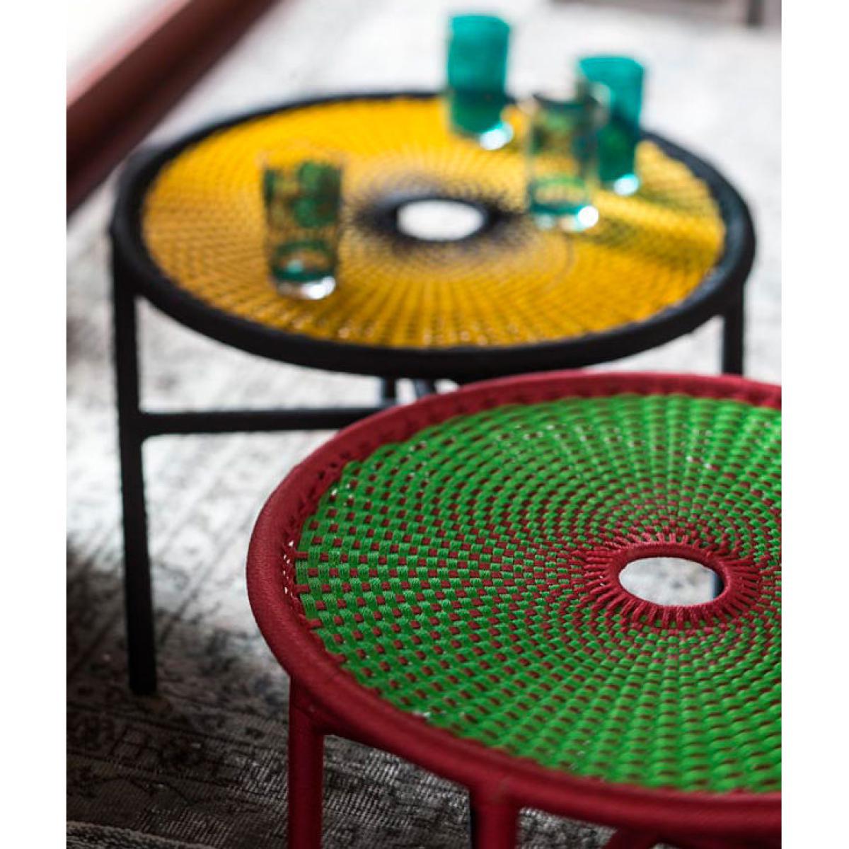 "An ethnic style livened up with flashy, contemporary, cheerful colours. As part of the “M'Afrique” project, Patrizia Moroso (artistic director of the eponymous brand) invited artists (designers, architects, photographers) to convey the strength and beauty of Africa through their works. Designers Sebastian Herkner, Patricia Urquiola and Tord Boontje joined in by creating a collection of outdoor furniture inspired by the creative language and culture of Africa. The result is staggering: this collection is at once exuberant, rich in humanity, baroque, colourful and full of vitality. A delight for the eyes and an invitation to travel. M'Afrique is a perfect synthesis between tradition and modernity: each piece of the collection is handmade by local craftsmen in a Senegalese workshop created by Moroso. The Banjooli coffee table is made of coloured polyethylene threads, hand-woven on a tubular structure in lacquered steel. The braiding technique used is traditionally found in Africa to make fishing nets. A remarkable piece of craftsmanship that makes each M'Afrique creation a unique piece. This creation's DNA consists of tradition and modernity, innovation and history and form and beauty all at once. Suitable for both outdoor and indoor use. PLEASE NOTE. The pieces in the M'Afrique collection are entirely made by hand. Each item is unique. Any slight variations in colour and braiding should not be considered defects. ".