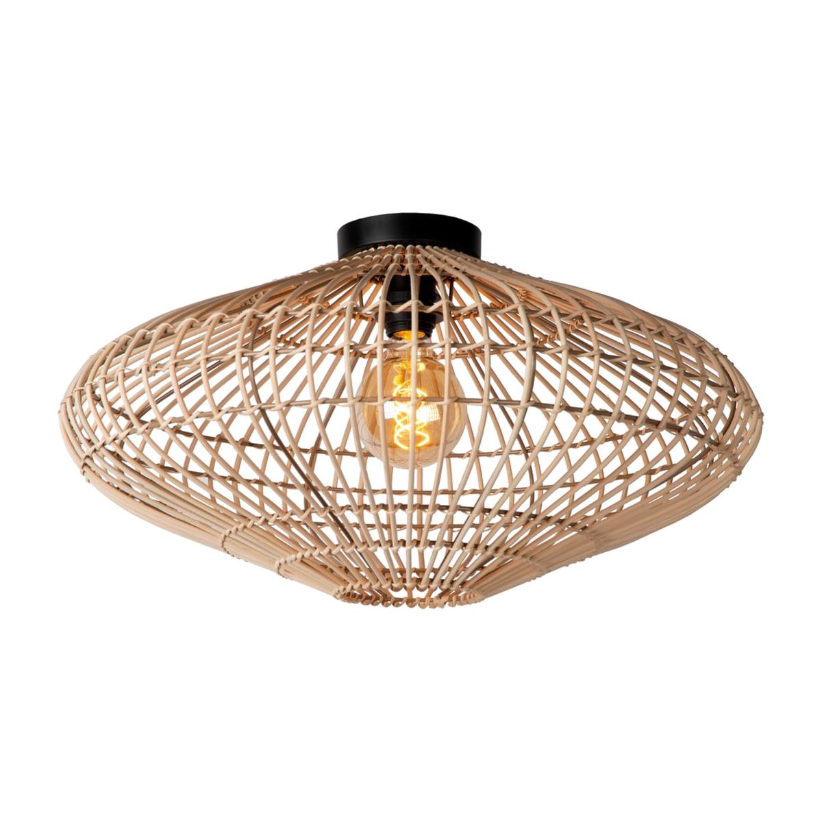 Say what Say rattan! Meet Magali, a striking ceiling lamp in which the filament light bulb is surrounded by a braided network of rattan threads. The oval-shaped outer shell gives this ceiling lamp plenty of body to show off. With a height of 31 centimetres and a diameter of 56 centimetres, Magali is flexibly usable. Above a dresser or in the kitchen, hall or toilet Check. If you connect the lamp to a dimmer, you always have exactly the light you are looking for, wherever you are.